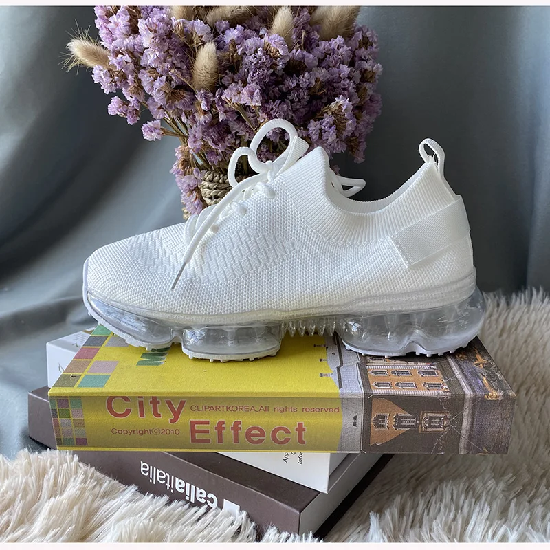 Сетчатые женские кроссовки с воздушной подушкой, белые женские спортивные кроссовки на платформе, трикотажные кроссовки, легкие, лето-осень 2020