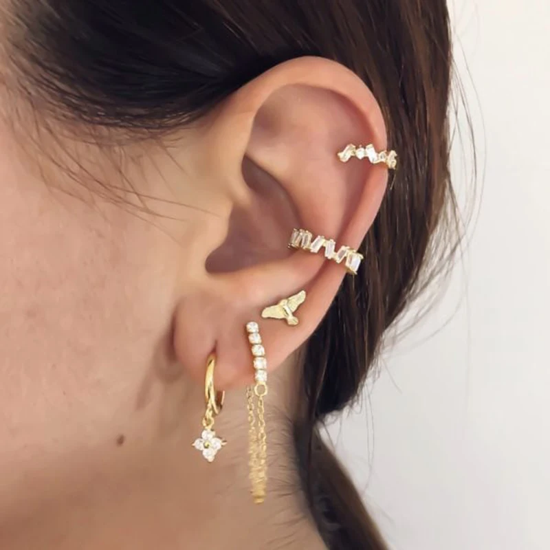 1 шт., серьги-каффы из стерлингового серебра 925 пробы с цирконием AAAAA, геометрические серьги-подвески для женщин и девочек, изящные украшения, без пирсинга, W4
