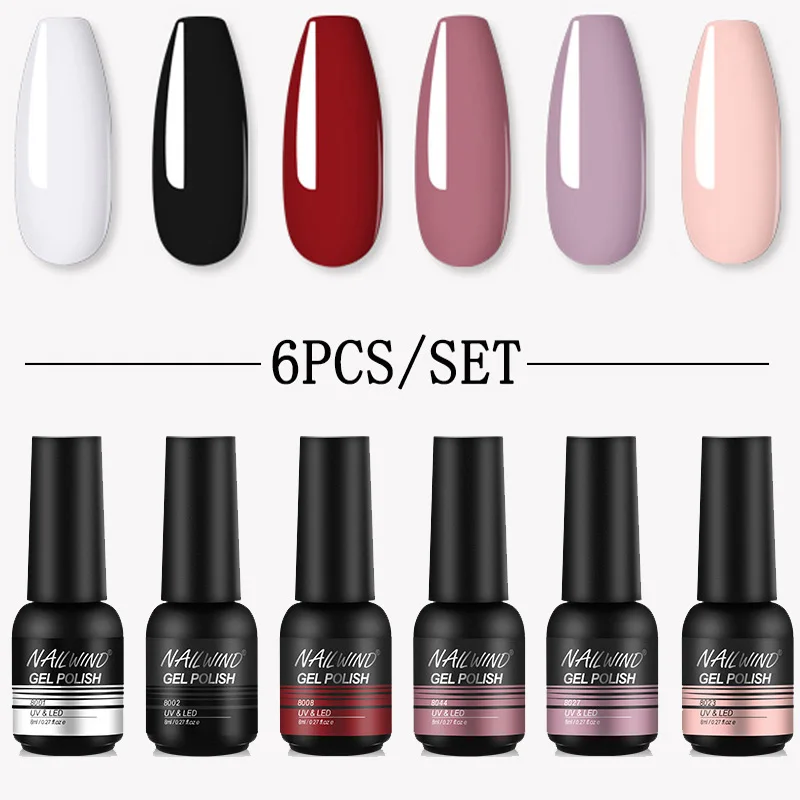 Гель-лак для ногтей NAILWIND набор гель-лаков для ногтей, 6 шт.набор, гибридный, полуперманентный, для маникюра