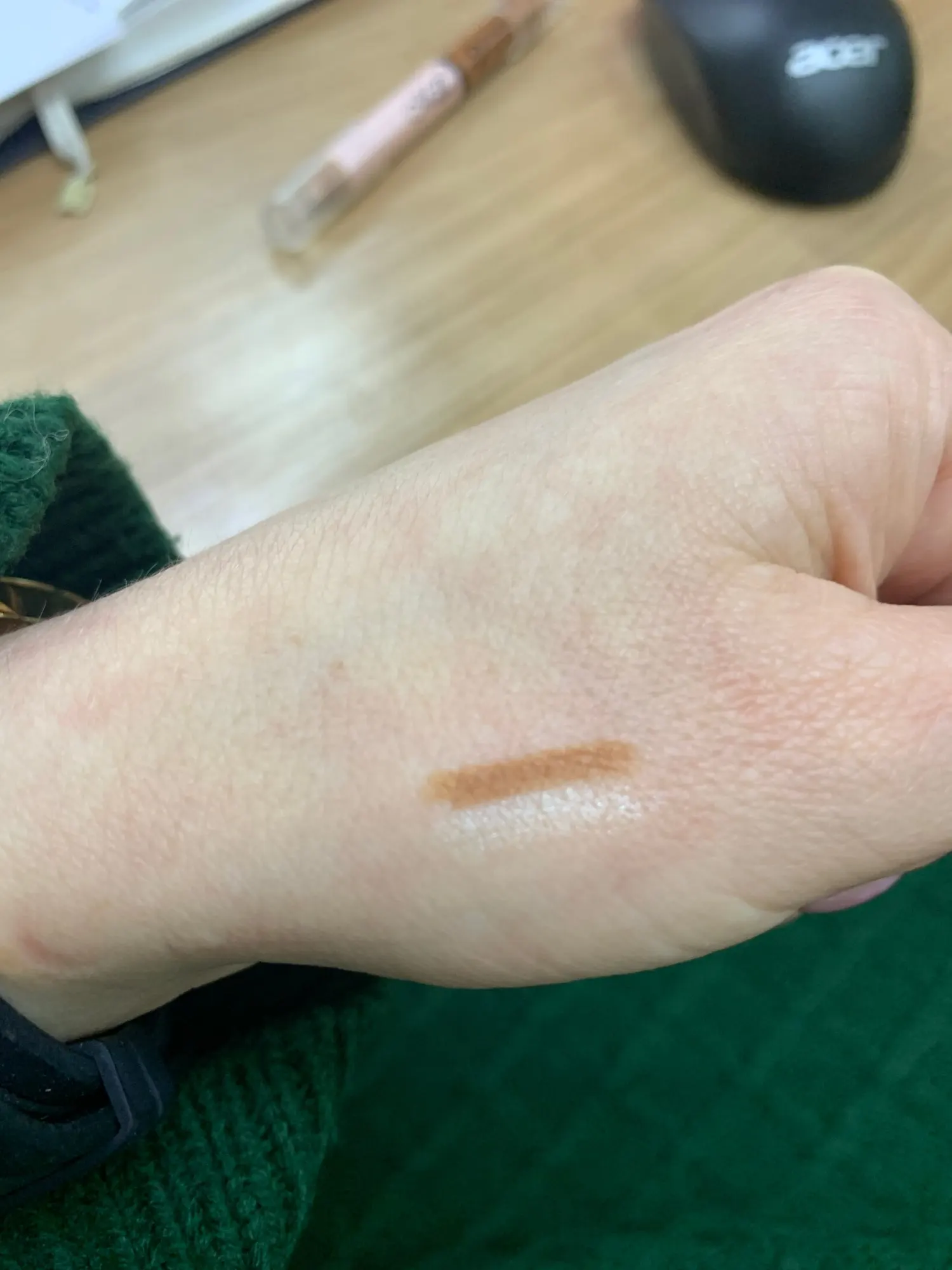 Плохо смотрится на коже, цвет слишком поддельный и желтый для настоящих тонов.