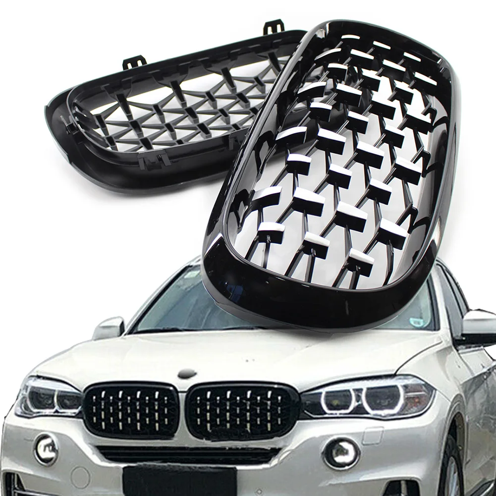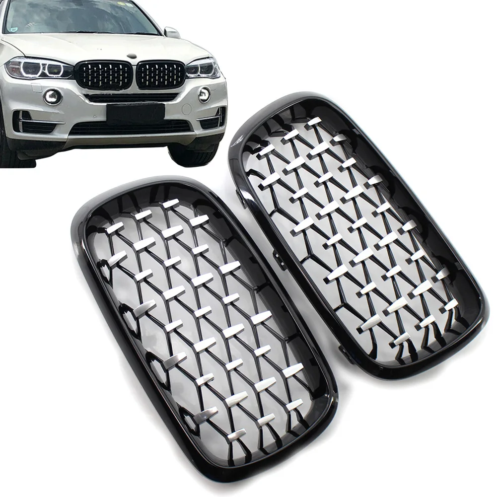 Передняя решетка для BMW X5 F15 F85 2014 2015 2016, АБС-пластик, хром, черный алмаз, метеоритный стиль, гриль