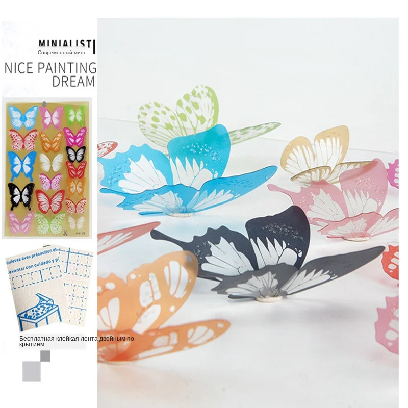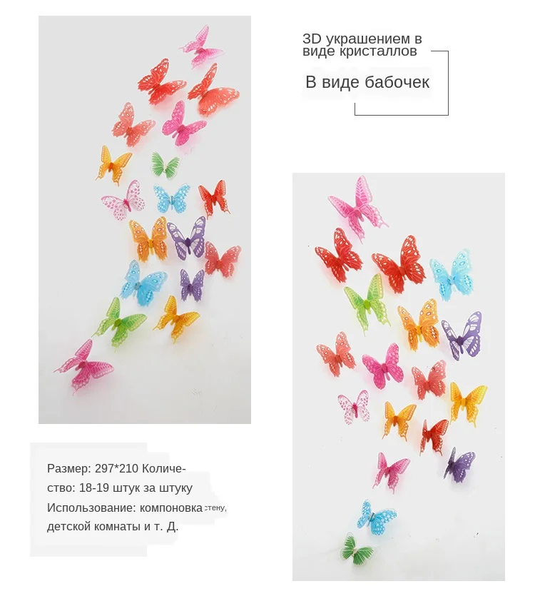 18 шт.3D наклейки на стену с хрустальными бабочками, украшения из ПВХ для праздника, вечеринки, комнаты, цветные наклейки, художественные обои, настенная роспись