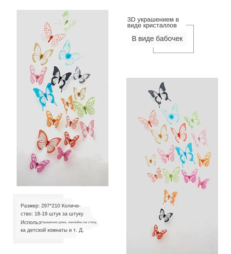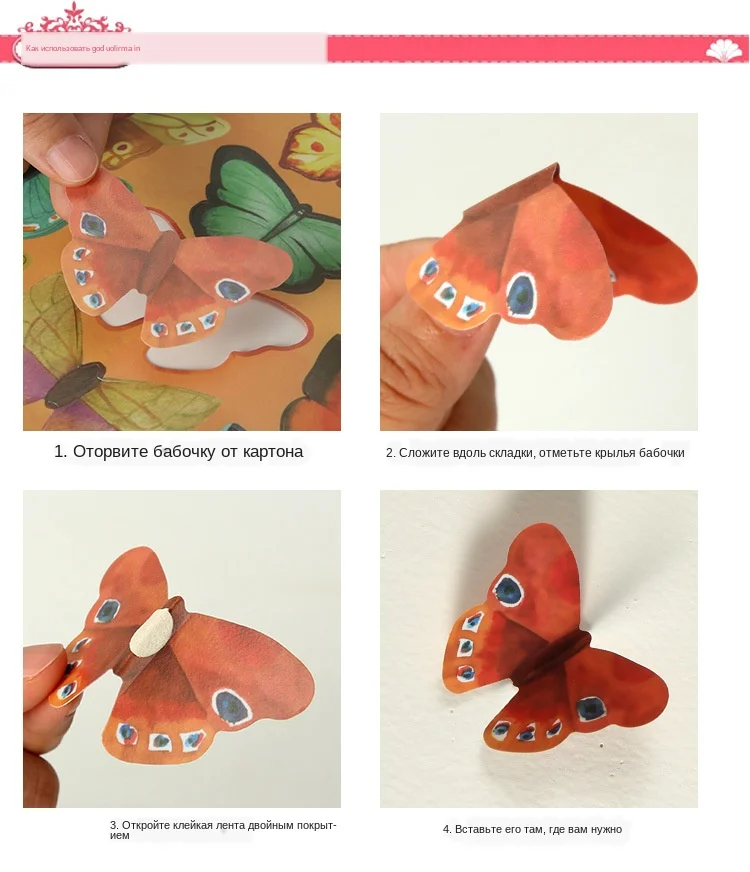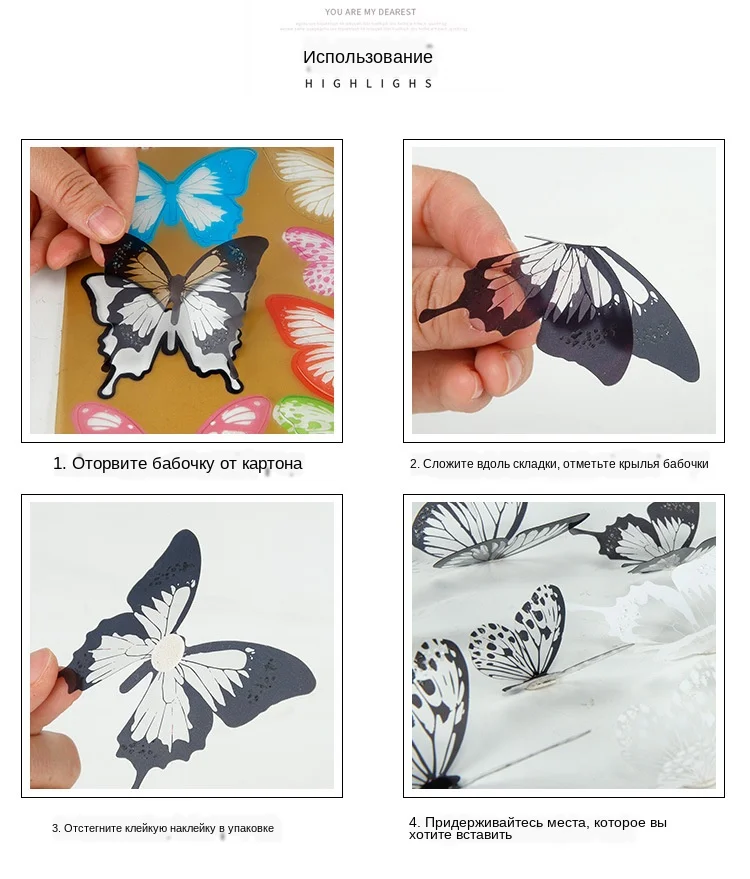 Использование: Сложите крылья, чтобы произвести 3D эффект, используйте двустороннюю ленту, чтобы приклеить к стене