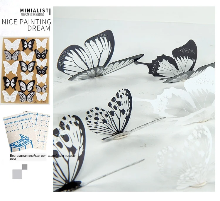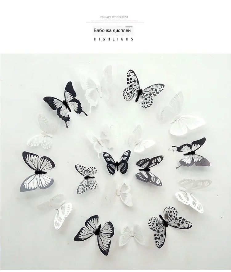 18 шт., 3D наклейки в виде бабочек, черные и белые художественные н...