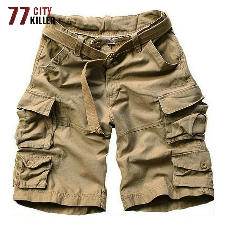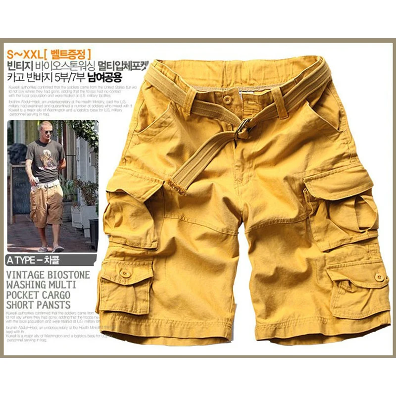 Шорты-карго мужские камуфляжные, шорты-бермуды, много карманов, стиль милитари, с бесплатным поясом, повседневные короткие штаны, летние