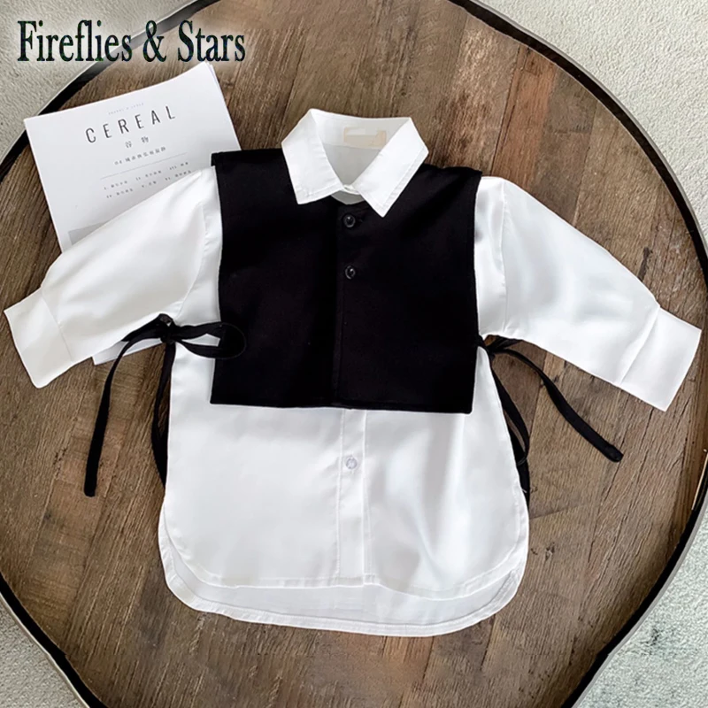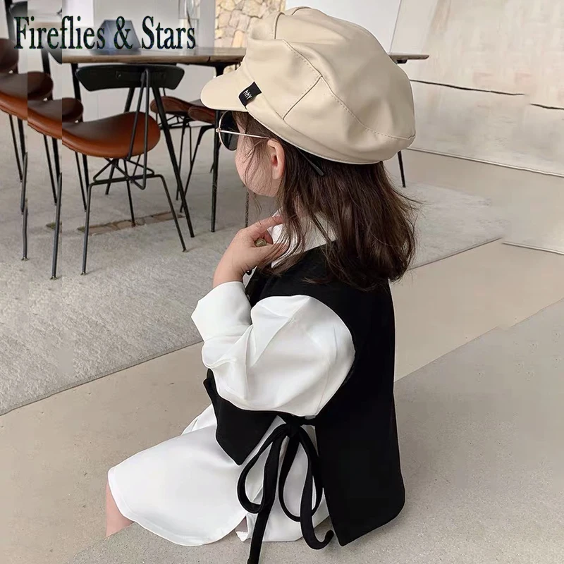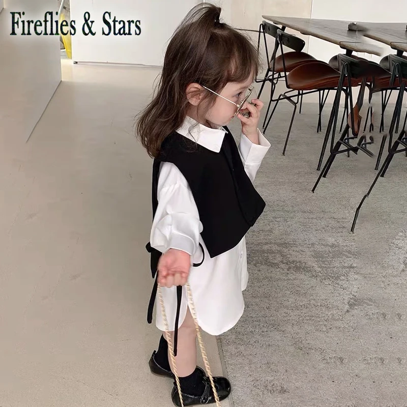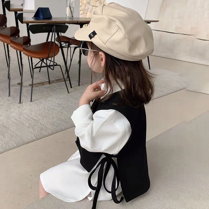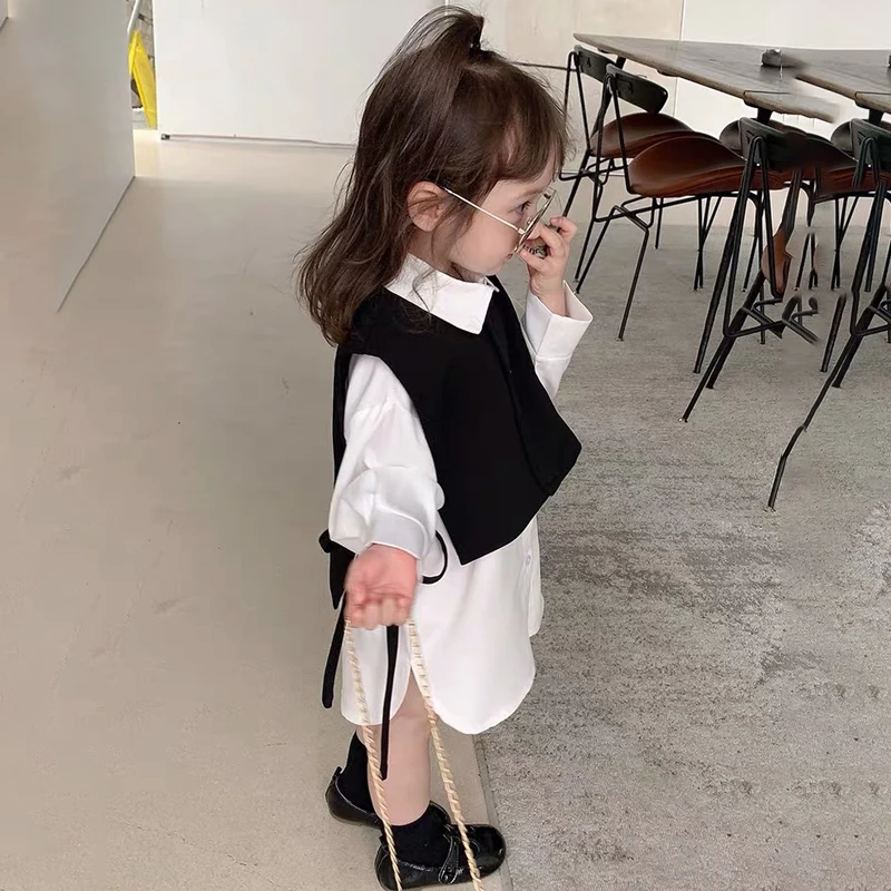Название:Весенне-осенний комплект из 2 предметов для девочек, блузка для малышей, платье + жилет, детские костюмы детская одежда модная уличная одежда черного и белого цвета для детей от 2 до 12 лет