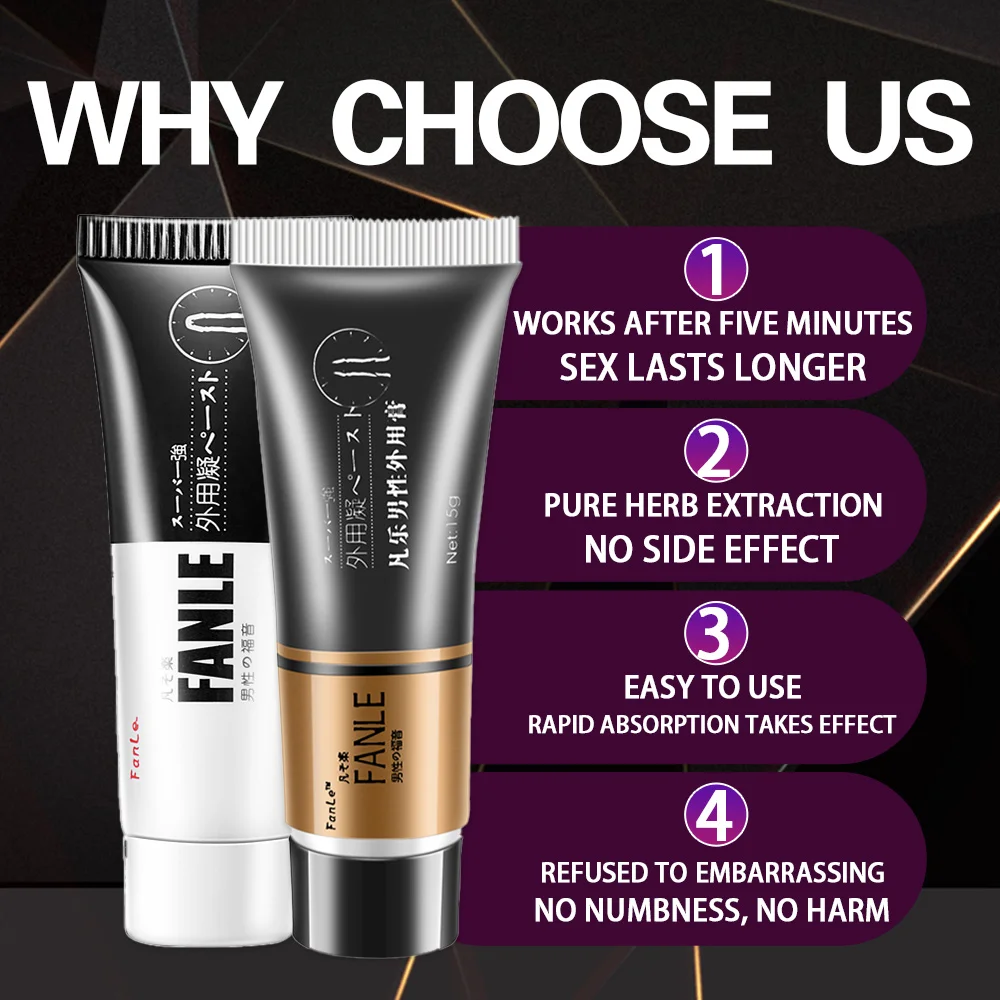 Мазь задержки Fanle является продуктом улучшенного спрея задержки, эффект поглощения мази хороший, травяной экстракт, не онемение, не травмирует организм, стойкий эффект дольше, чем обычный спрей. Крем для задержки Fanle помогает вам Дольше находиться в постели, позволяя наслаждаться большим и продолжительным сексом. Решение по запросу для каждого может помочь сократить разрыв оргазма и заставить ее чаще испытывать "Ой, ах"!