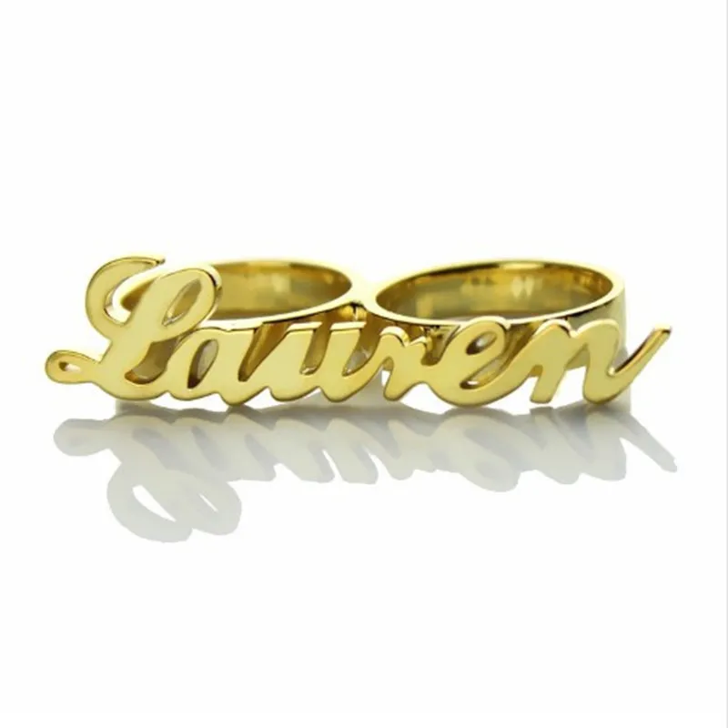 Модное и простое персонализированное двойное кольцо с именем шрифта...