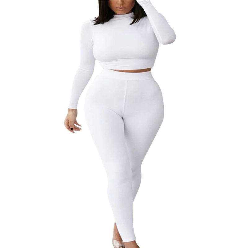 Женский Повседневный костюм из двух предметов, укороченный топ и брюки черного и белого цветов с длинным рукавом, Клубная одежда на весну и осень, 2020