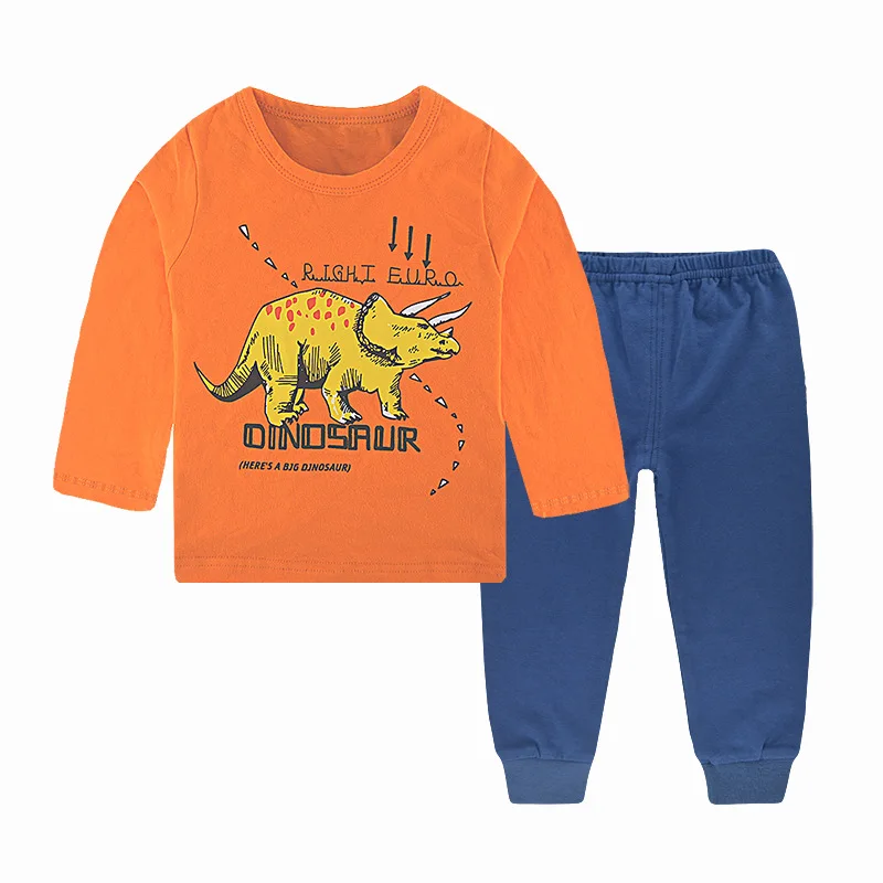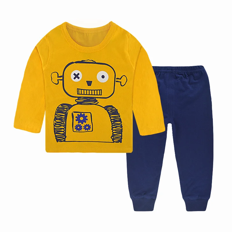 Детский набор пижам для мальчиков 2020, футболка с длинными рукавами и круглым вырезом с мультяшным принтом топы и штаны осенняя одежда для сна для новорожденных девочек