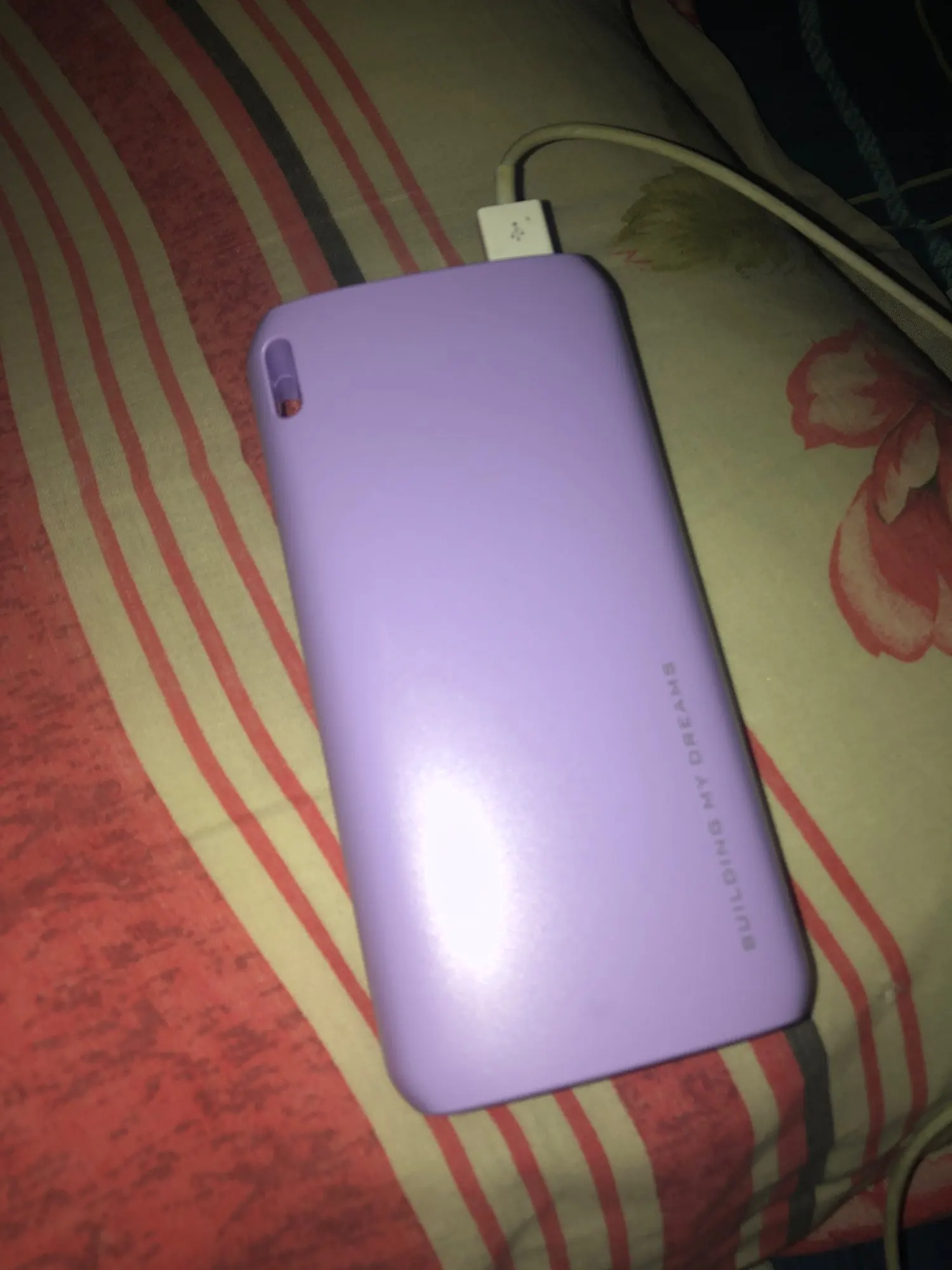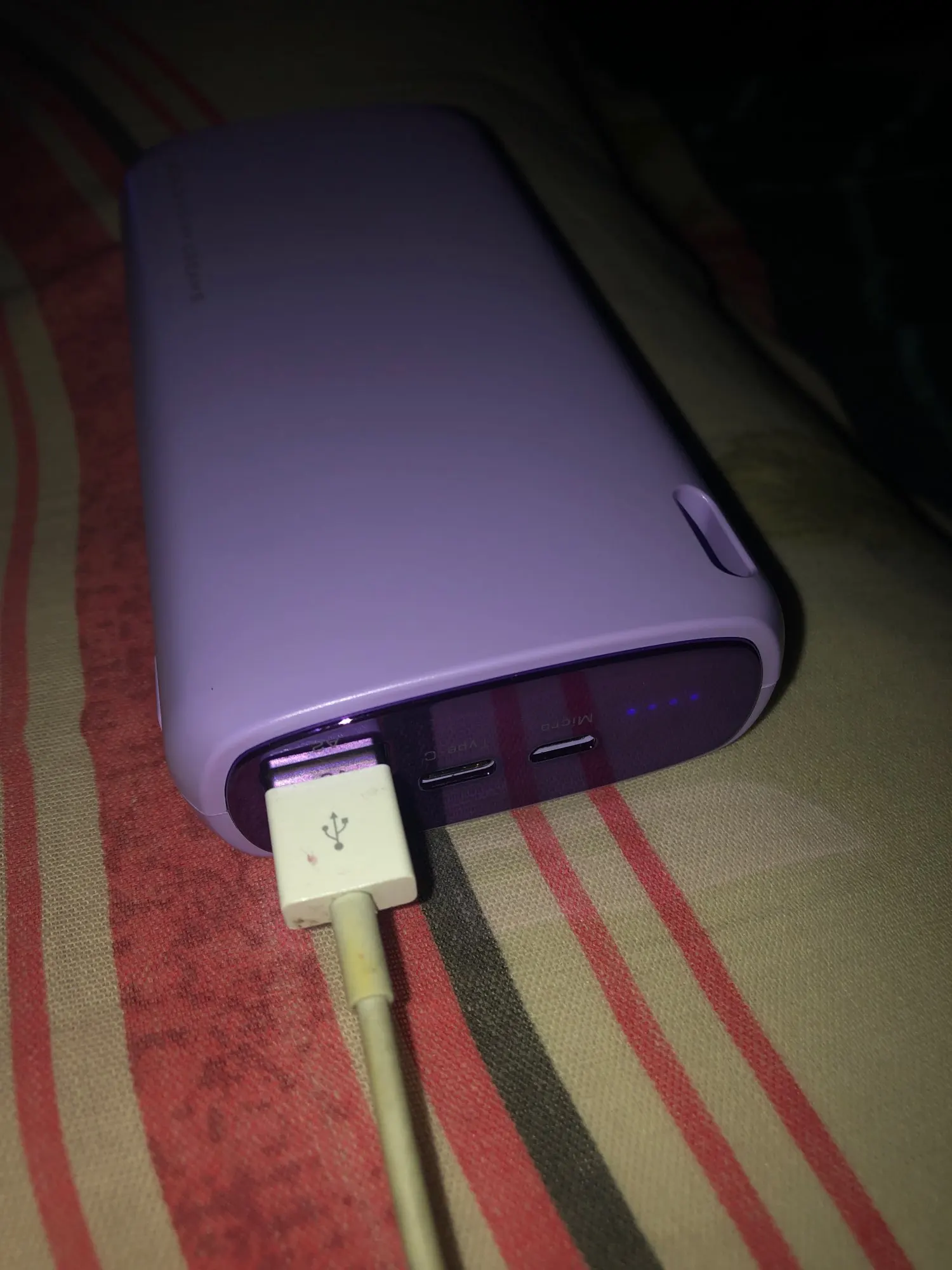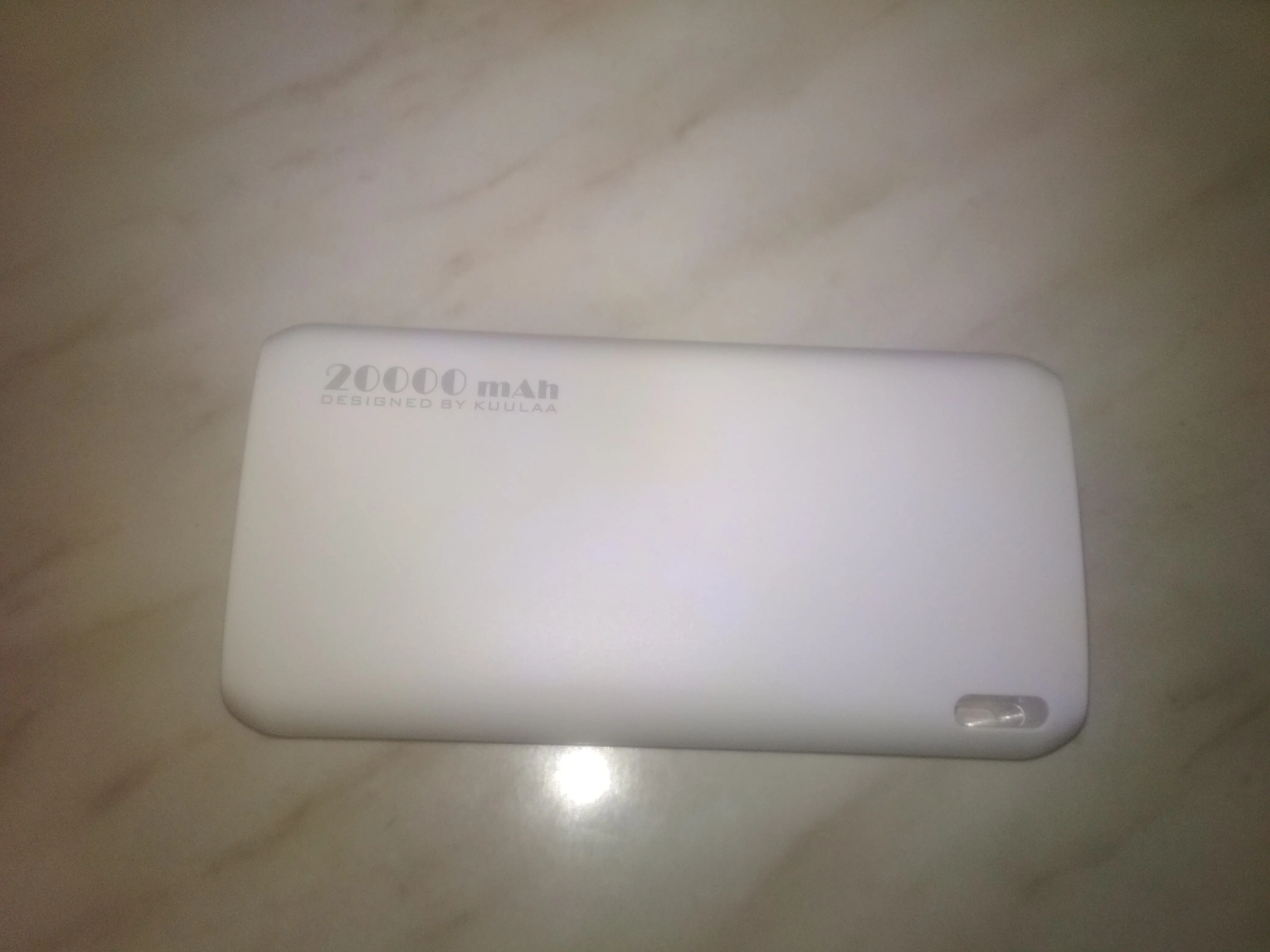 Пришел полностью заряженный. Приятный сиреневый цвет. В комплекте шнур Micro-USB. Заказывала 11.11., получила курьерской доставкой 18.12. Пока не использовала полностью.