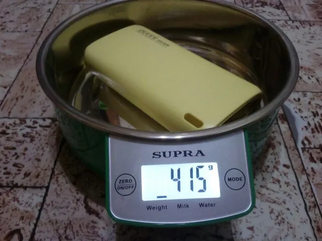 Доставка пункт выдачи dpd в Калугу 3 дня, со скидками 11.11 вышло ~600 руб. Посылка упакована в пузырчатый пакет, можно было понадежней упаковать, коробка чуть помялась по краям. Аккумулятор пришёл заряженный на ~80% с весом 415 грамм. Цвет бледно-жёлтый с золотой панелькой.