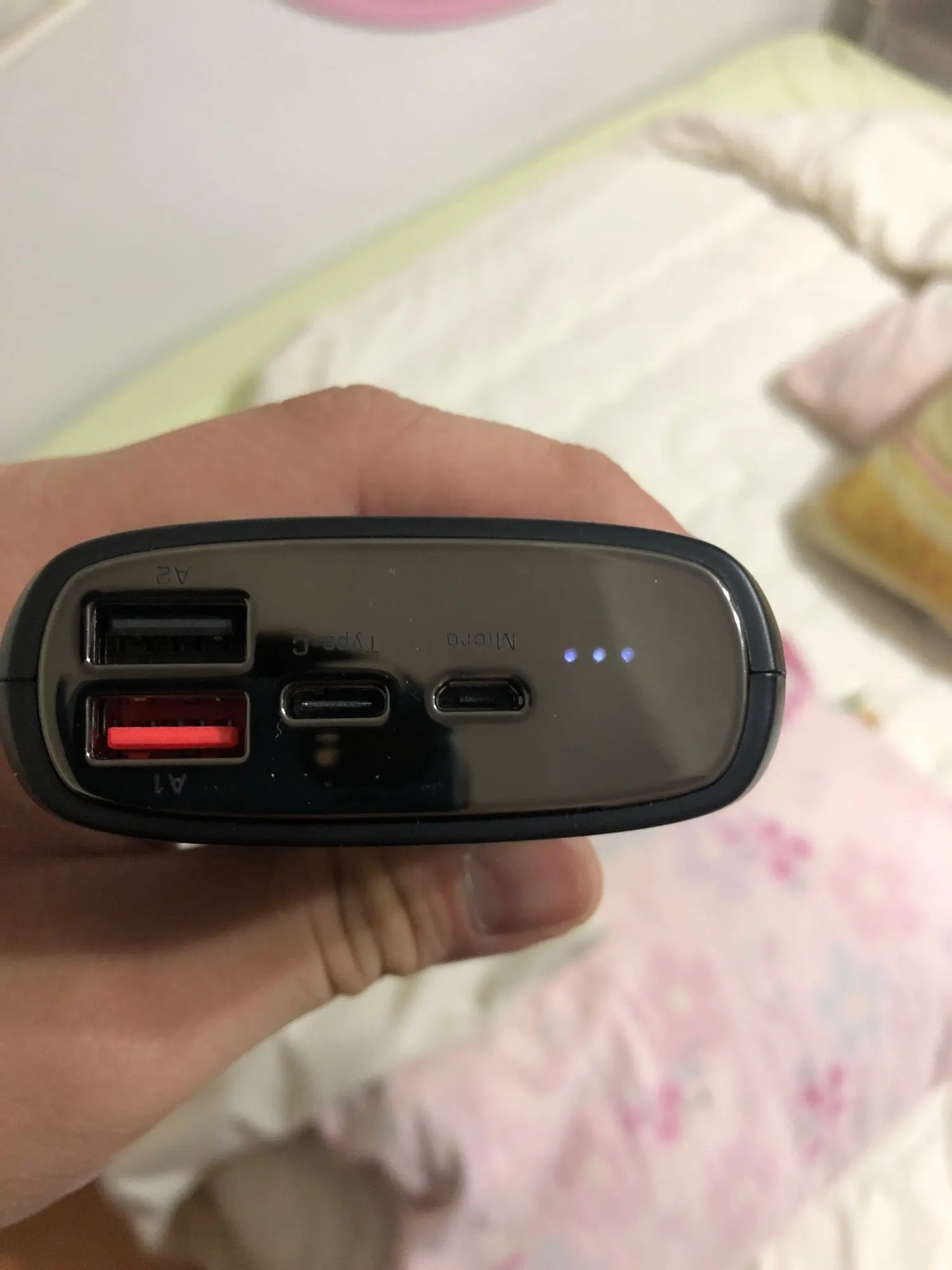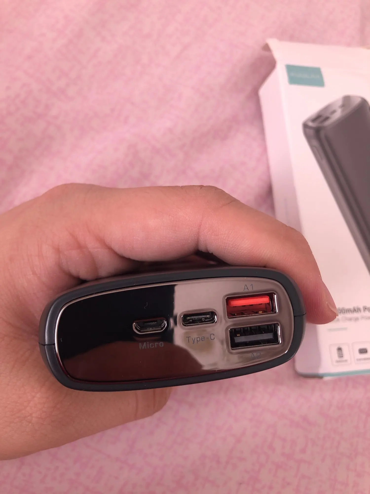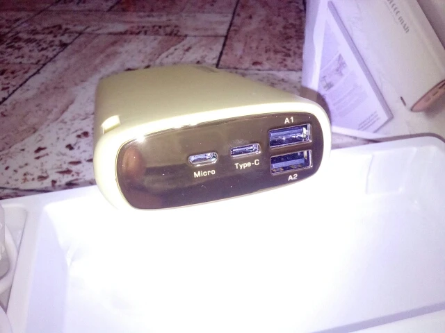 Все пришло быстро до Красноярска (заказ 11 ноября- пришло 19 ноября). Заряд самого аккумулятора по type-C и micro, заряд устройств - через два порта usb. Заказом довольна, все работает.