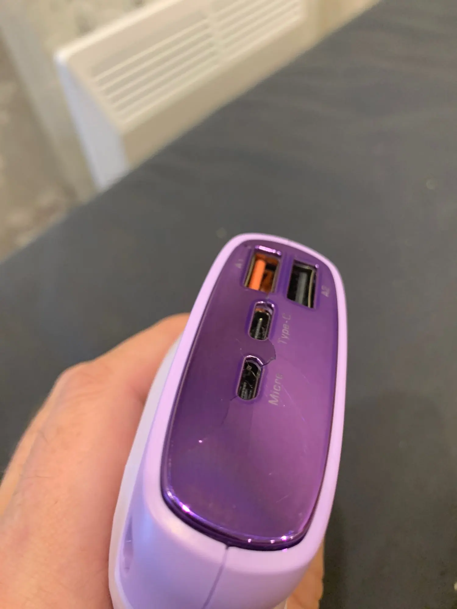 но к сожалению расколота передняя панелька, паковать нужно лучше! но сам аккумулятор нормальный и присутствует быстрая зарядка в обе стороны и емкость честная, брал в подарок, но в таком виде не судьба дарить