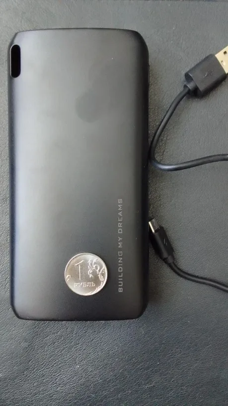 Посылку доставили за 18 дней, служба DPD, все целое, даже коробка не помята, банк заряжен на 3 точки, вечером проверю, как работает и дополню отзыв. Покупала со скидкой за 735 рублей. Шнур usb ну очень уж короткий!
