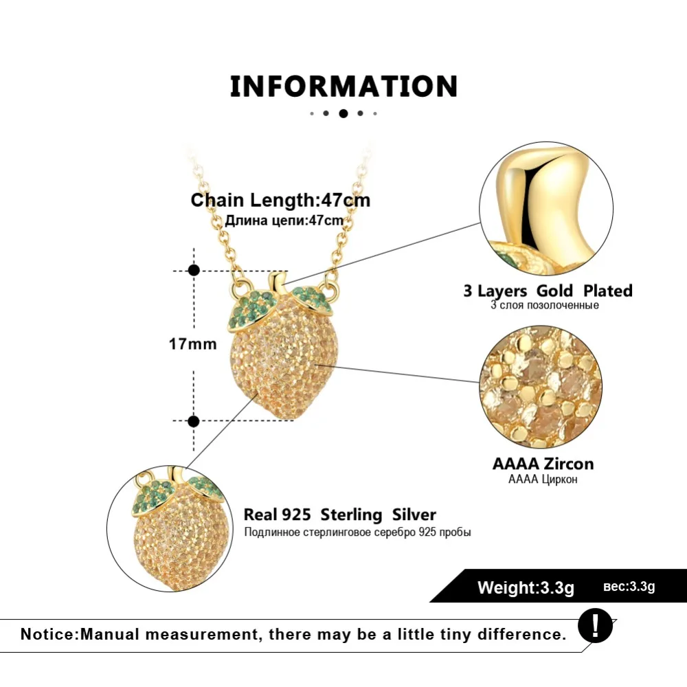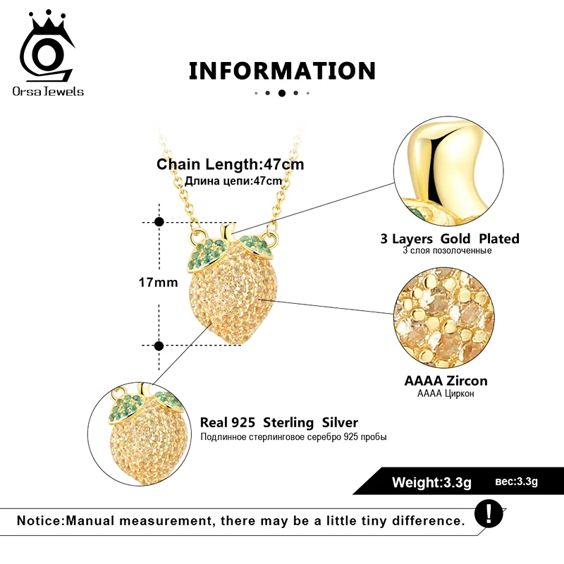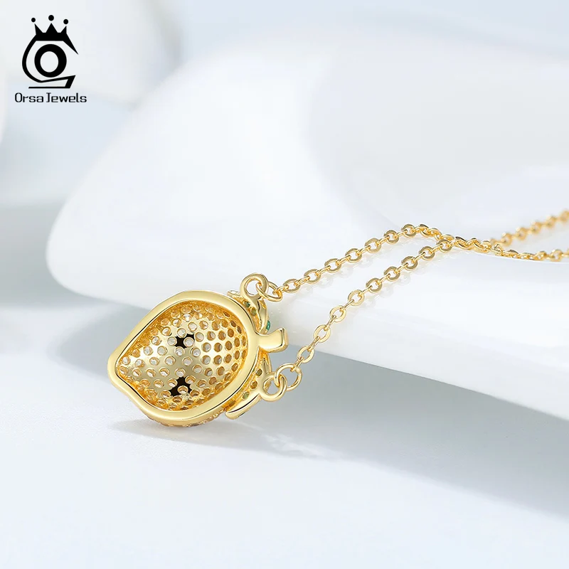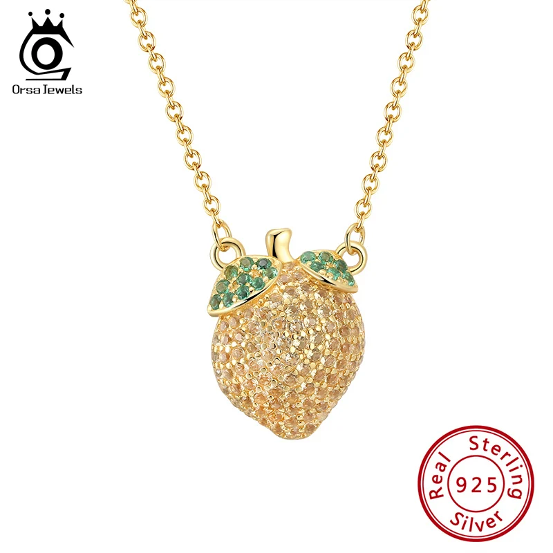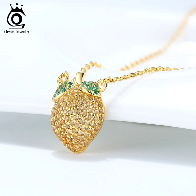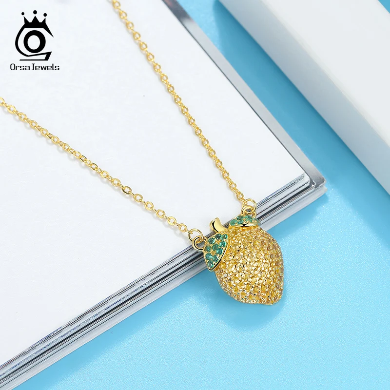 ORSA JEWELS ожерелье из стерлингового серебра 925 пробы с фиксированной подвеской, оригинальный дизайн, желтое лимонное крутое летнее Ювелирное Украшение, Женское Ожерелье EQN05Материал: серебро 925 пробы