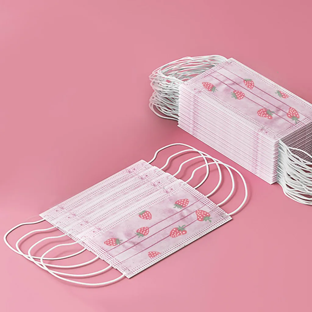 50 шт. ребенок одноразовая маска для лица с нарисованной клубничкой; Denta промышленный 3 слоя для детей для лица защитный малыш Обложка маски # м