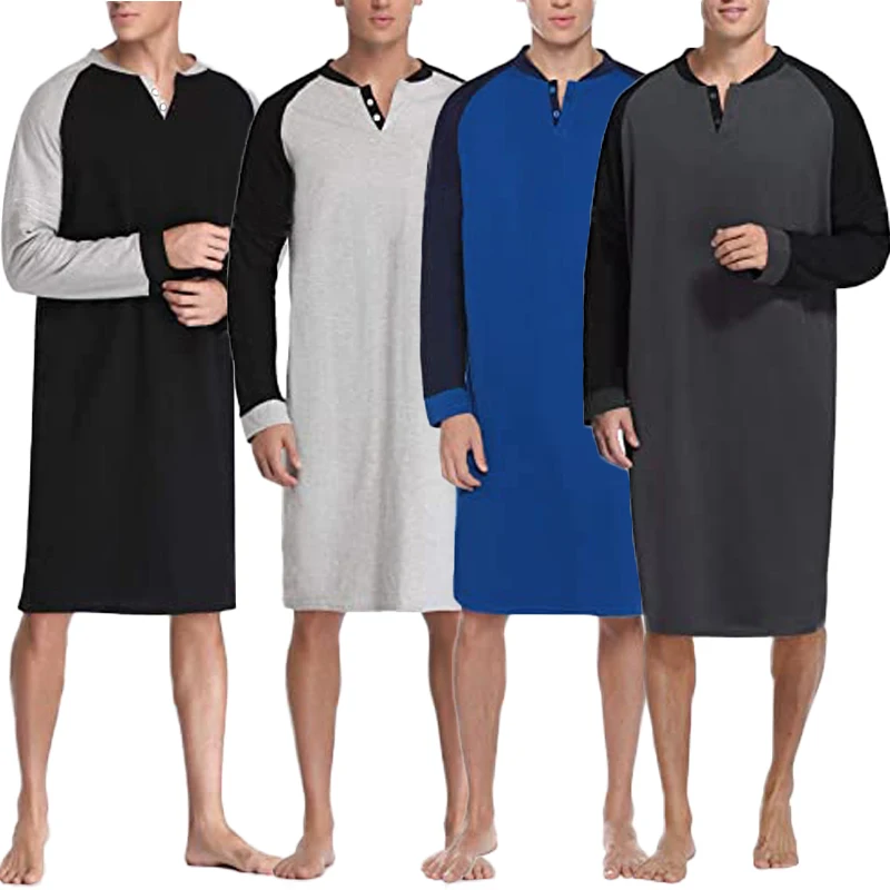 Ночная рубашка мужская, с длинным рукавом, V-образным вырезом, 5XL7, свободные купальные халаты