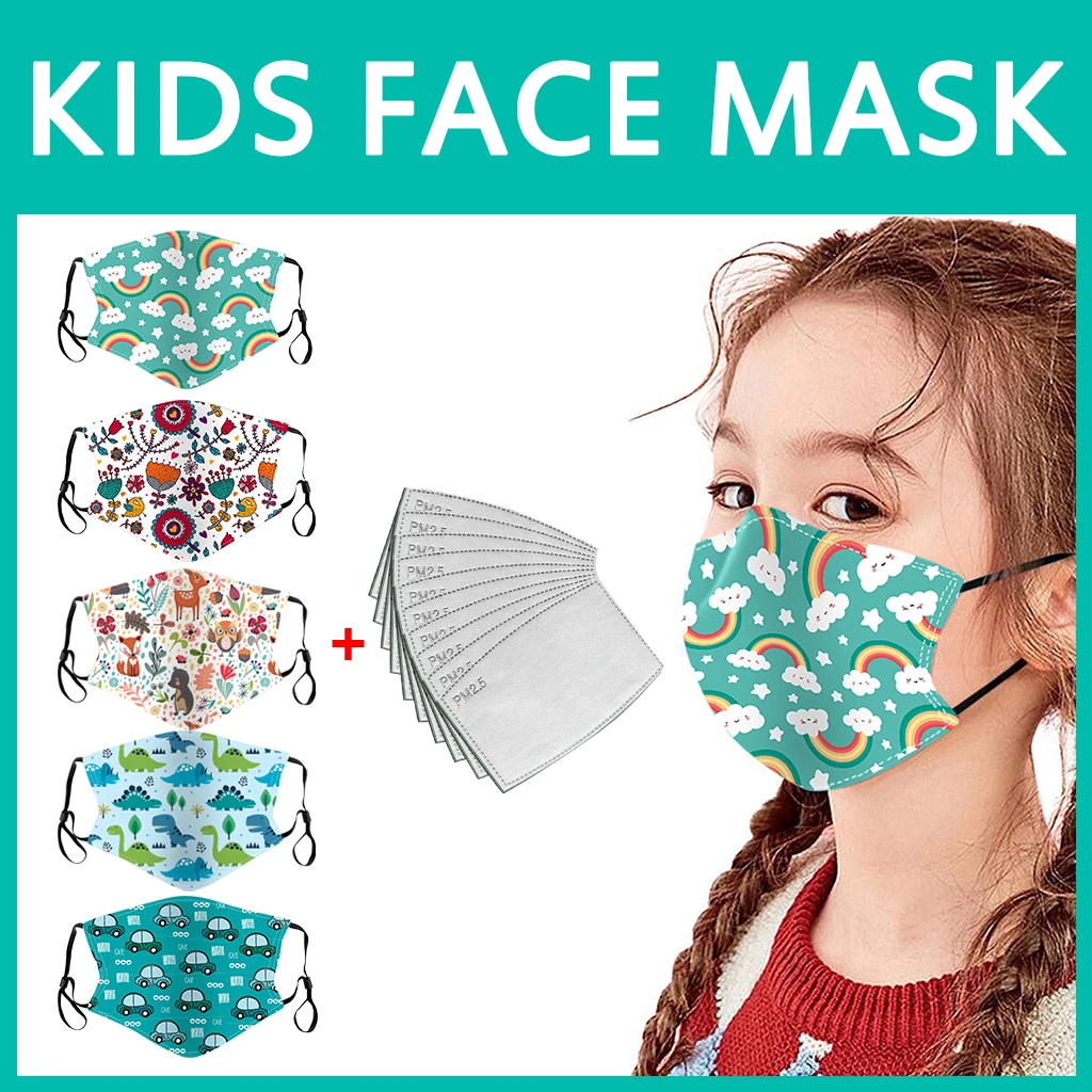 Детские многоразовые хлопковые пылезащитные маски для лица с рисунком аниме, сменные защитные фильтры PM2.5