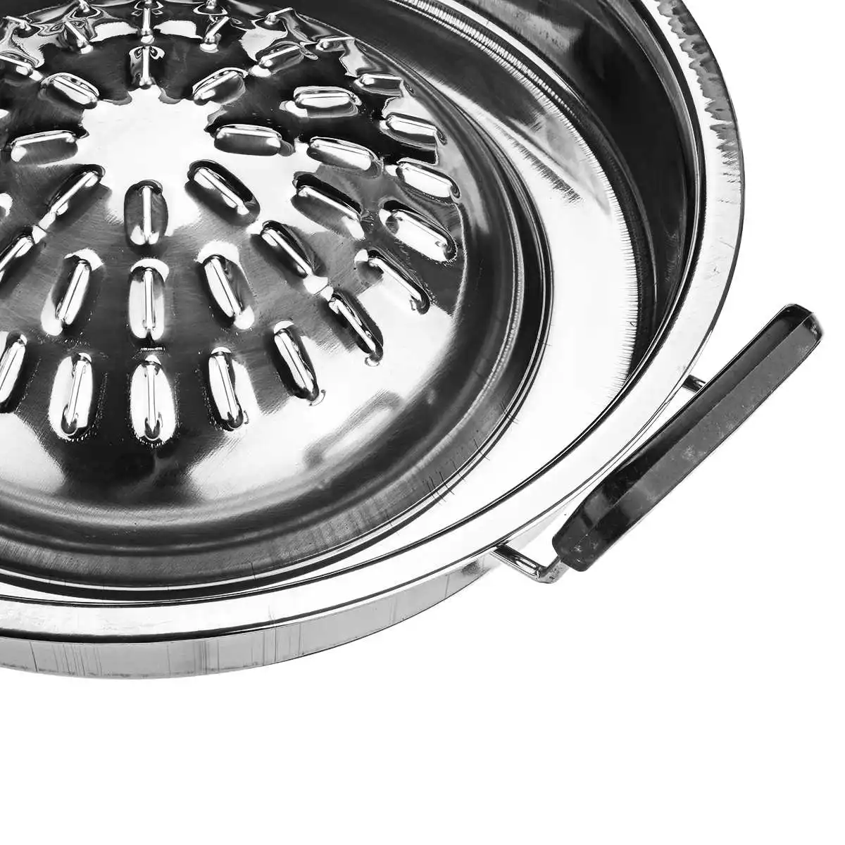 Особенности: ● Настольный тайский стильный гриль для барбекю сковорода создает интересный способ поделиться едой с семьей и друзьями. ● Используя такой гриль, каждый гость готовит свою еду. ● Изготовлен из алюминиевого материала и легко чистится. ● Тонко нарезанные полоски мяса или морепродуктов готовятся на алюминиевой купольной части гриля. Стопор вокруг внутренней окружности гриля наполнен бульоном, в котором готовят овощи и лапшу для завершения еды. Вы можете слегка покрыть поверхность гриля кухонным спреем, чтобы предотвратить прилипание, или начать с приготовления нескольких кусочков бекона для «смазки» (и вкуса) гриля. ● Этот настольный тайский гриль для барбекю на древесном угле также отлично подходит для барбекю в Корейском стиле. ● Для 2-4 человек.