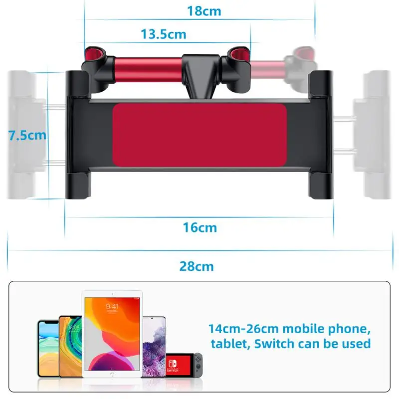 Телескопический Кронштейн для заднего сиденья автомобиля, для Ipad, 4-11 дюймов, мобильный телефон, черныйкрасный