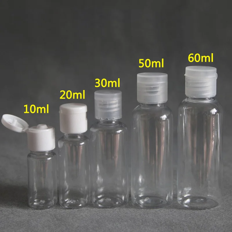 Пластиковые прозрачные флаконы с откидной крышкой для ПЭТ, 50 шт., 5 мл, 10 мл, 20 мл, 30 мл, флаконы для косметических образцов, дорожные контейнеры для заполнения жидкостной крышкой
