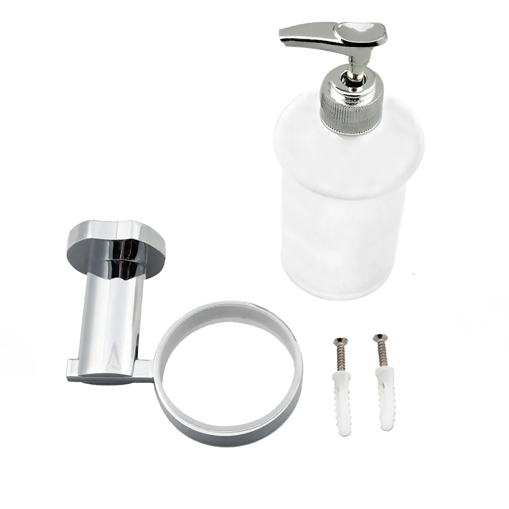 Крепление к стене дозатора для мыла Raiber R53912 очень эргономичное решение. Дозатор предназначен для жидкого мыла и других средств такой же констистенции. Емкость сделана из матового стекла, держатель выполнен из латуни с хромированным покрытием, что повышает прочность и долговечность самого изделия.В комплект входят:настенный дозатор для мыла (1шт), держатель для дозатора, монтажной набор.