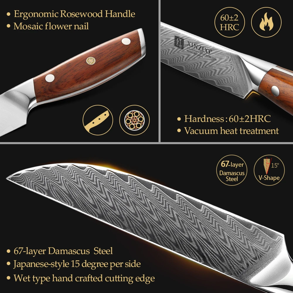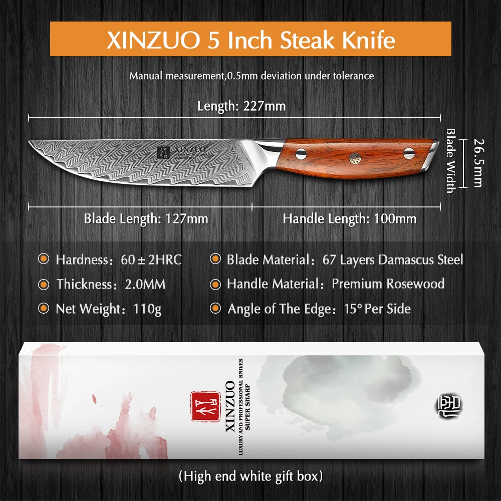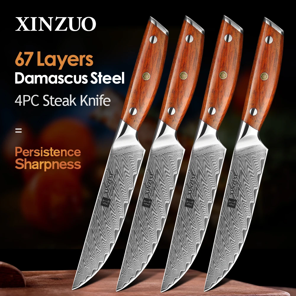 Набор ножей для стейка XINZUO VG10, дамасская стальная бритва 5 дюймов, острое лезвие, инструменты для шеф-повара режущий, кухонные приборы для резки мяса из дамасской стали