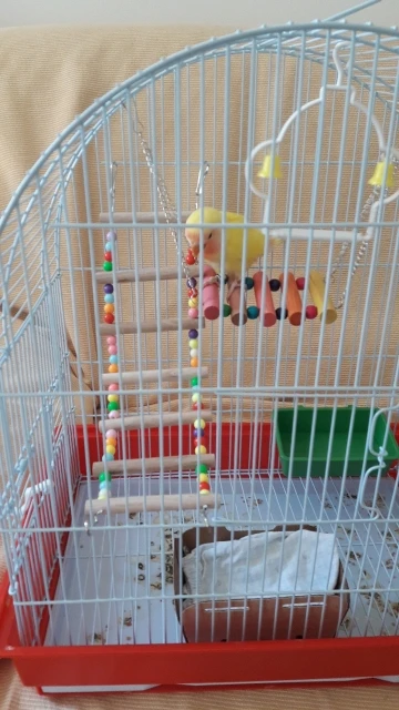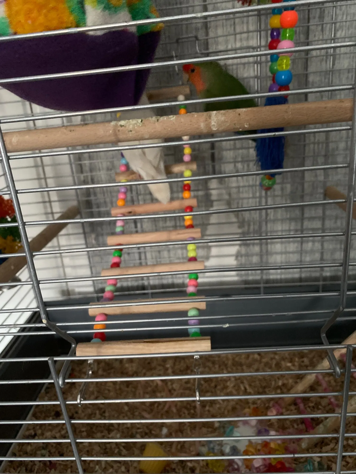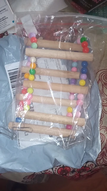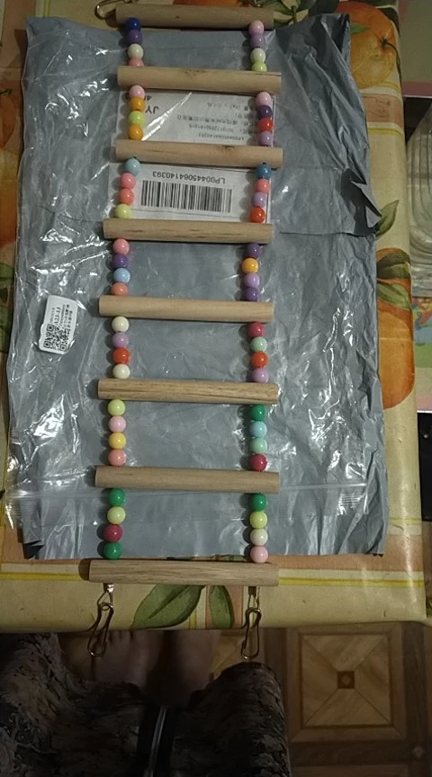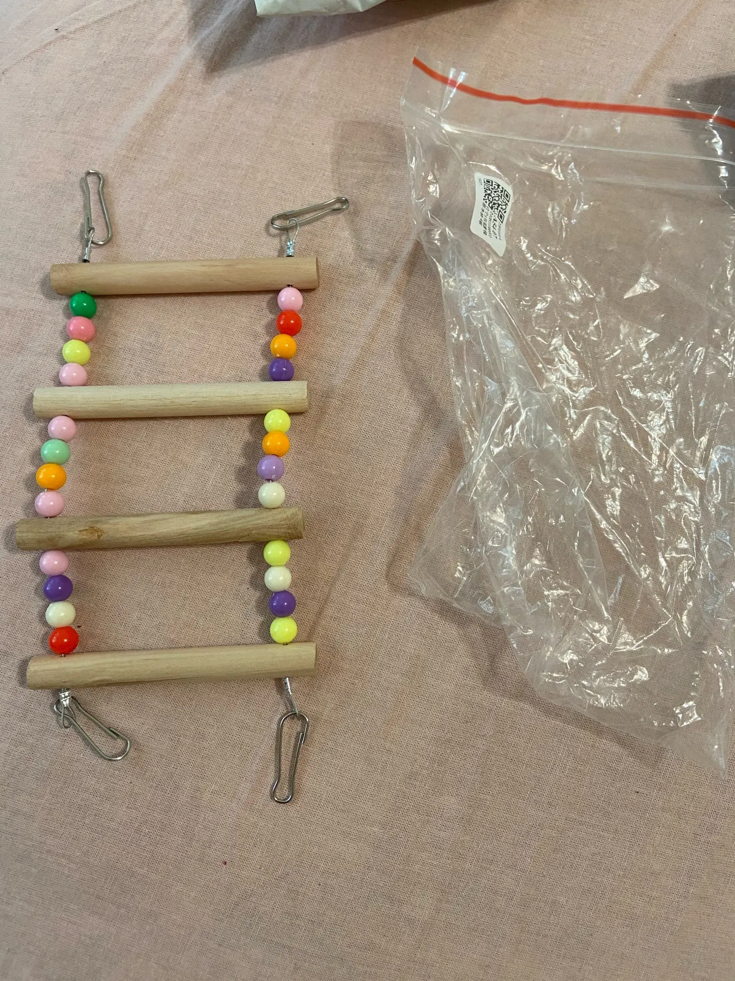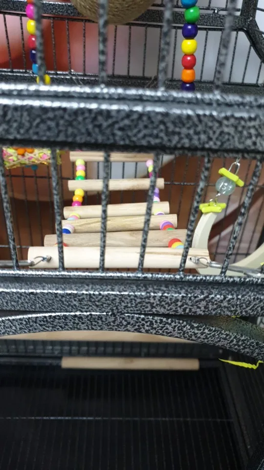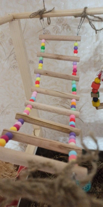 Очень понравилось как сделана лесенка.Ровные деревяшки соединены разноцветными бусинками.Спасибо! пока не ставили в клетку,только получили