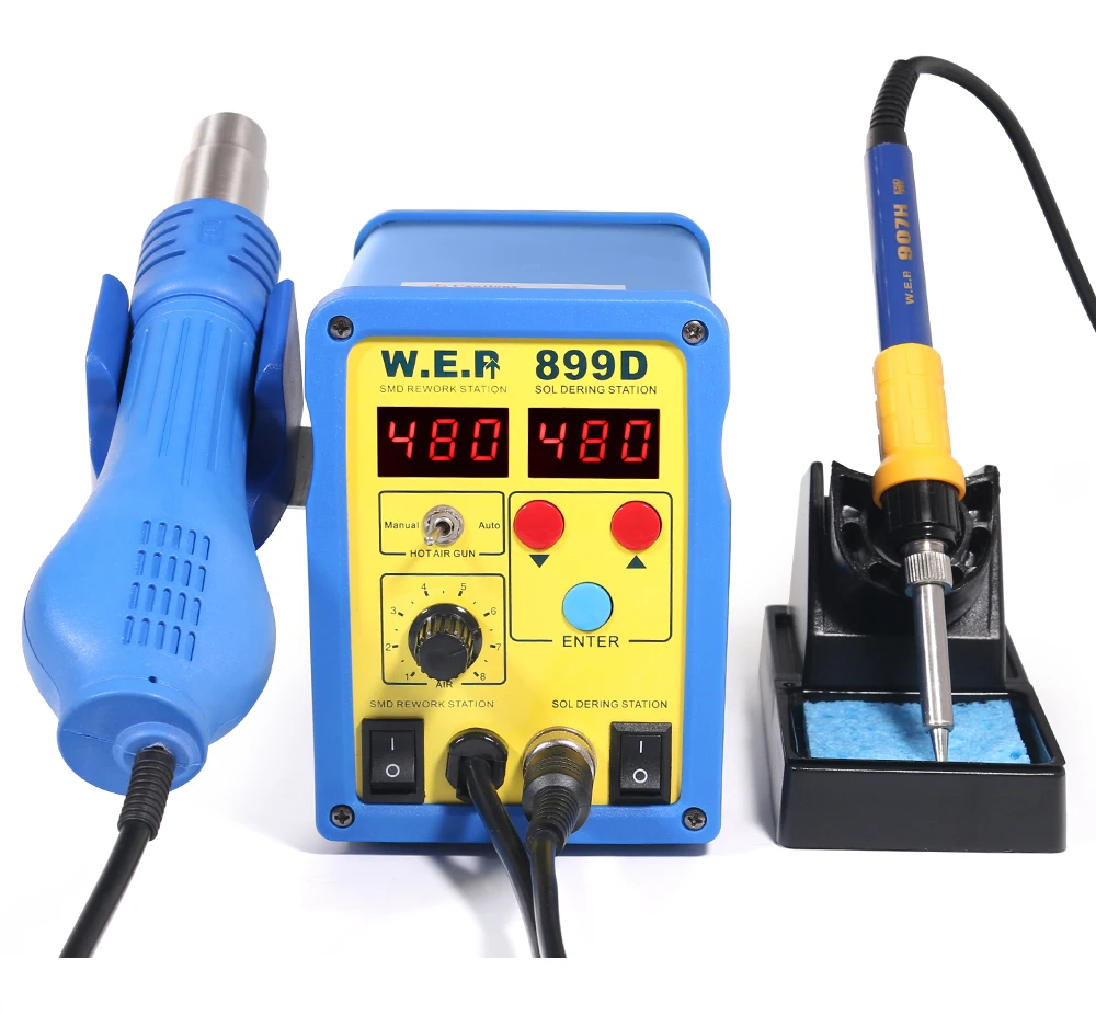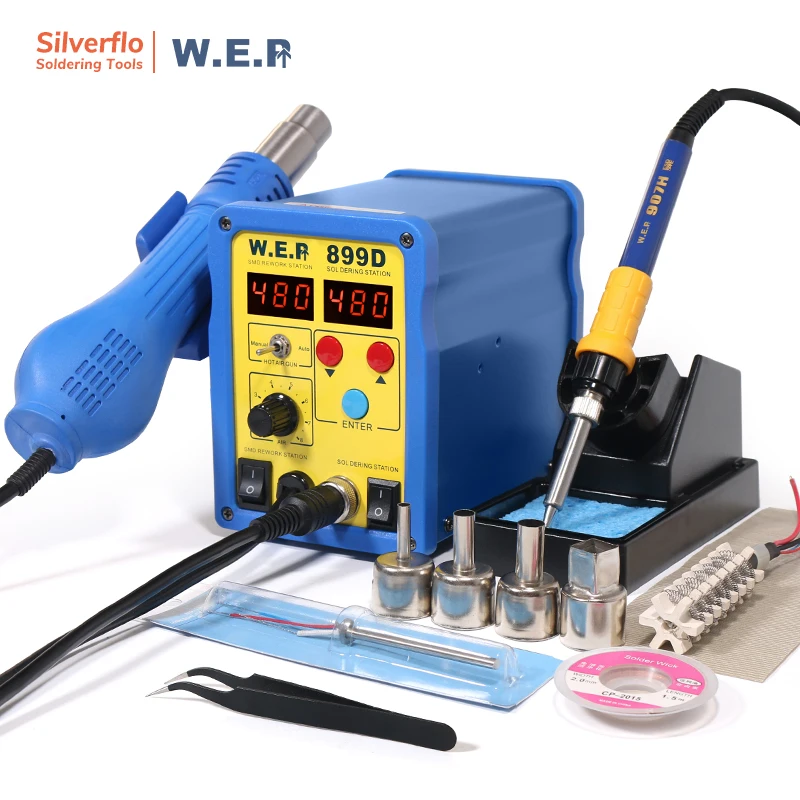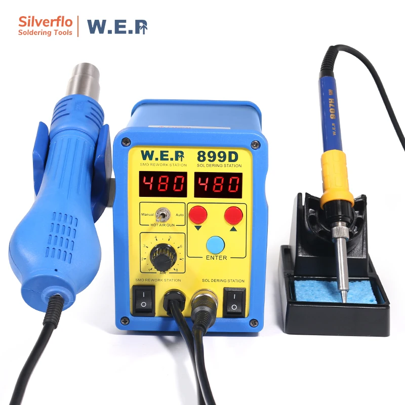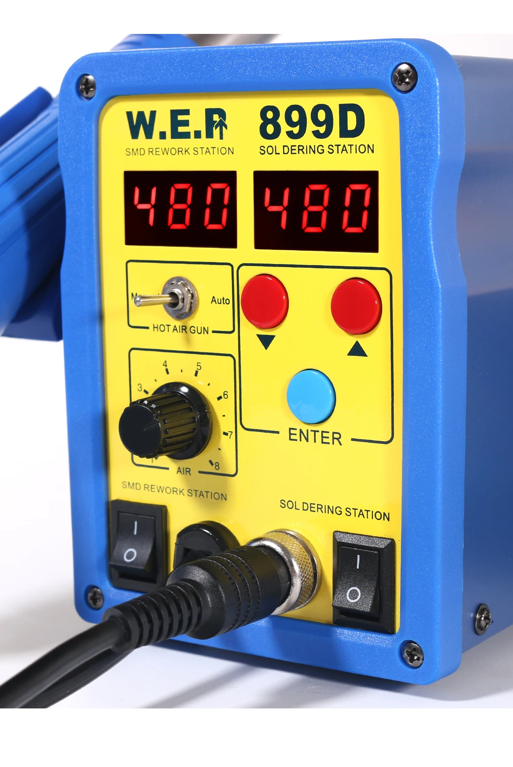 Паяльная станция WEP 899D с двойным цифровым дисплеем и паяльником, автоматическая ручная паяльная станция с термофеном