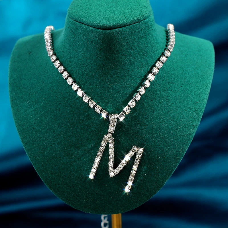 Модное ожерелье с подвеской Стразы в виде алфавита для женщин 2021 ...