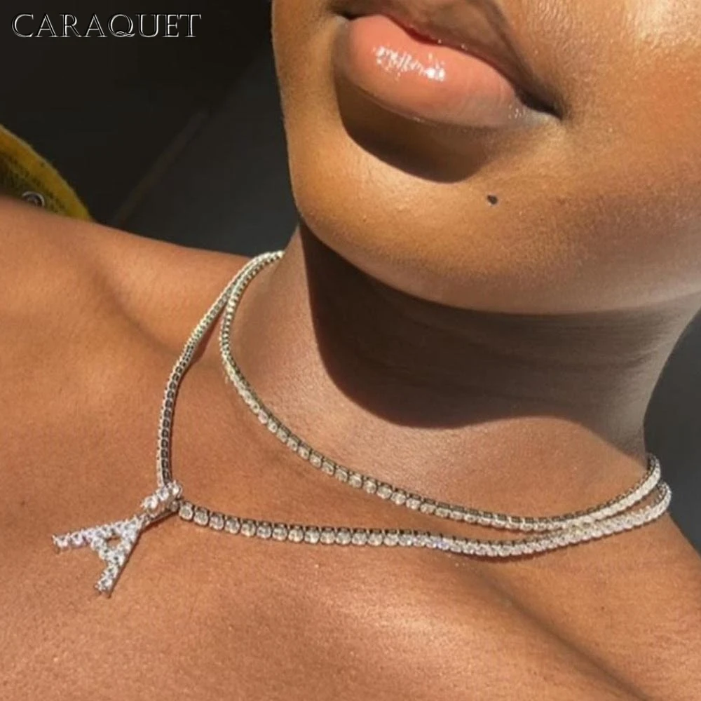 Ожерелье с подвеской Caraquet с буквами инициала, теннисная цепь се...