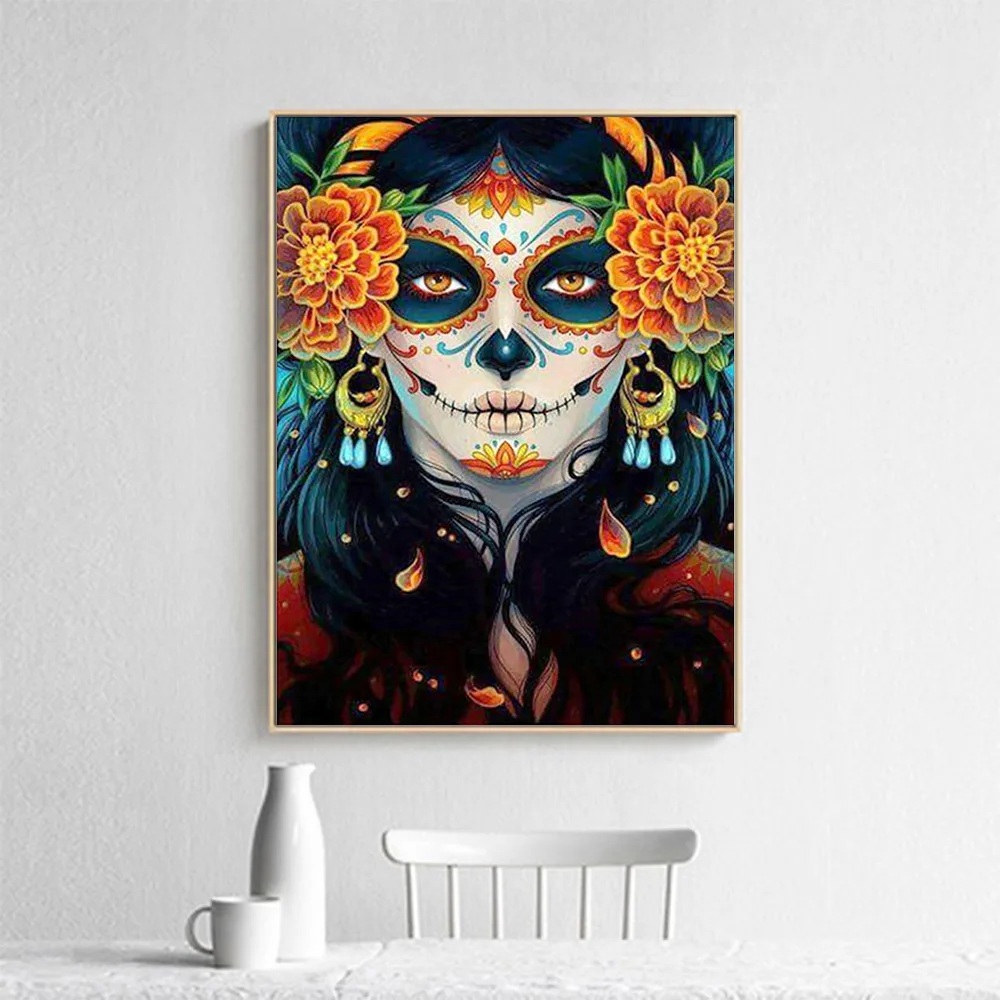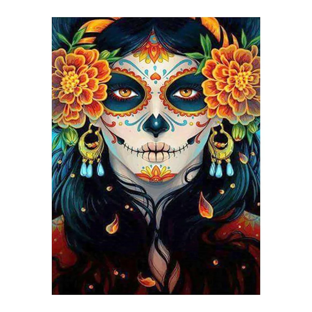 Женщина с черепом макияж алмазная живопись круглый полный дрель Портрет Рождество DIY мозаика вышивка 5D Вышивка крестом домашний декор
