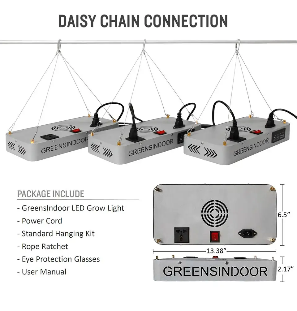 Посылка 128 светодиодов-GreensIndoor светодиодный светильник для выращивания-Шнур питания-Стандартный подвесной комплект-Трещотка веревки-Очки для защиты глаз-Руководство пользователя
