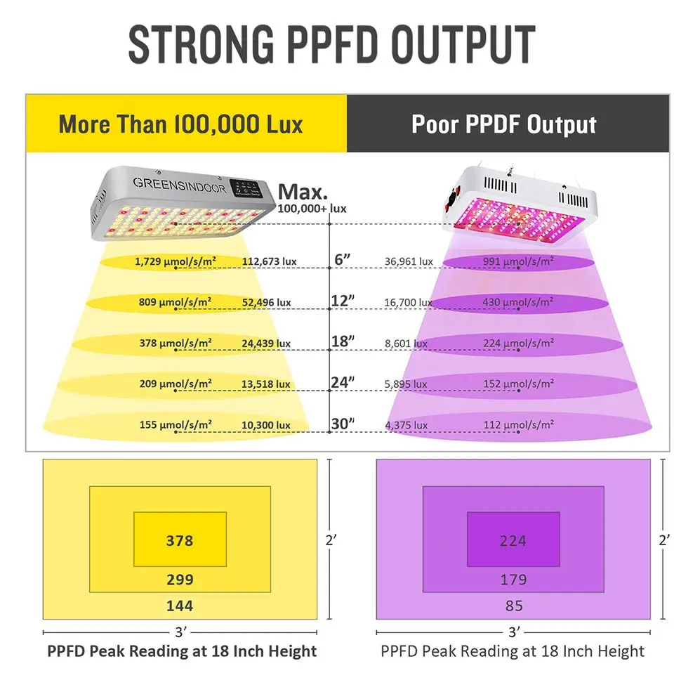 [Ультра яркий]Использование супер яркий светодиодный чипов. Высокая производительность PPFD. Разработан, чтобы сохранить баланс выхода PAR/Lumen.