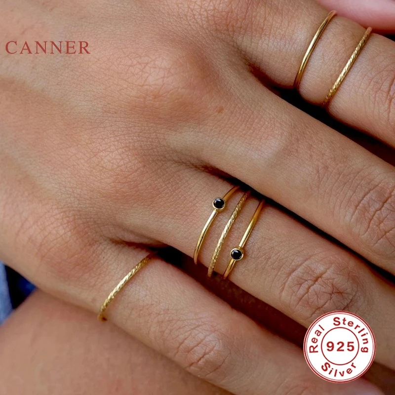 Кольцо CANNER Mini с черным бриллиантом, 100% Стерлинговое Серебро 925 пробы, позолоченные кольца для женщин, Роскошные ювелирные украшения, свадебные кольца, Bijoux