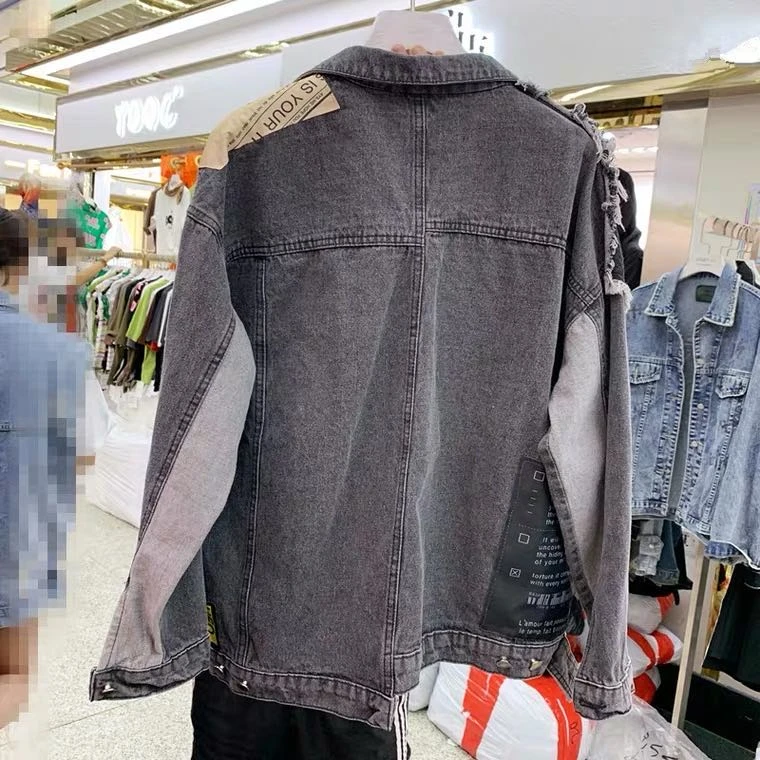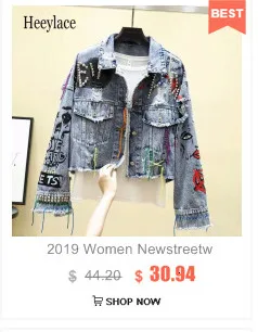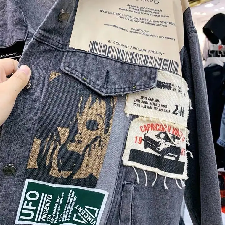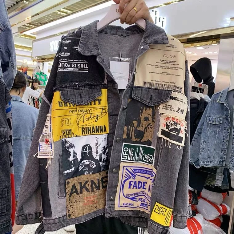 Женская джинсовая куртка, осенняя куртка-бомбер с длинным рукавом, аппликацией из газет