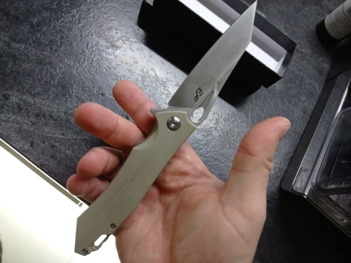 Отличный нож. Лайнеры облегчены,заточка хорошая,подшипники, необычный дизайн. Буду ещё брать один.