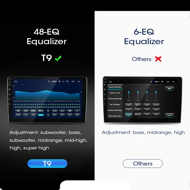 Встроенная регулировка по умолчанию составляет 48 эквалайзеров, а окружающее звучание можно настроить одновременно, что позволит вам погрузиться в чудесную музыку.