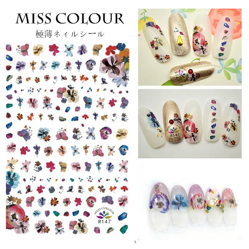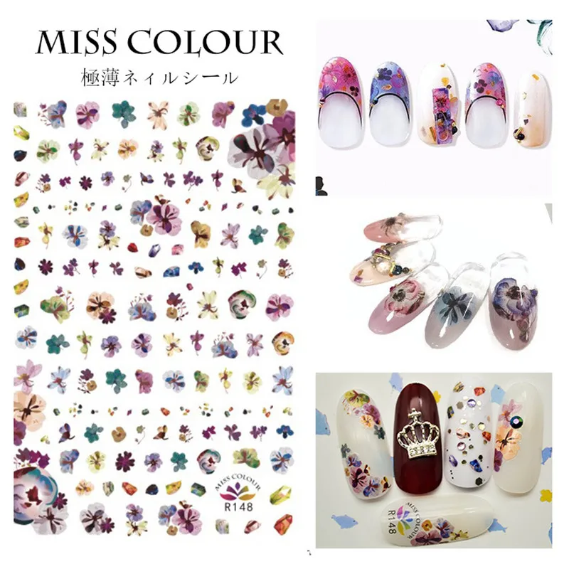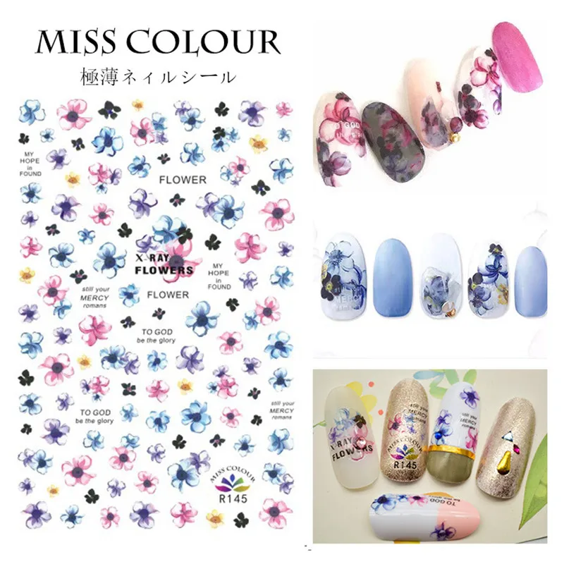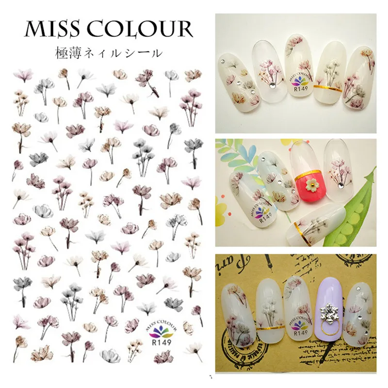Наклейка для ногтей R145, 3D акварель, полупрозрачный Цветущий цветок, водостойкая наклейка для ногтей для девочек, детские украшения для творчества и маникюра