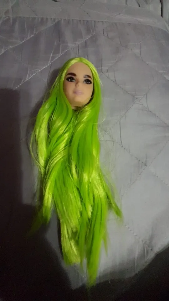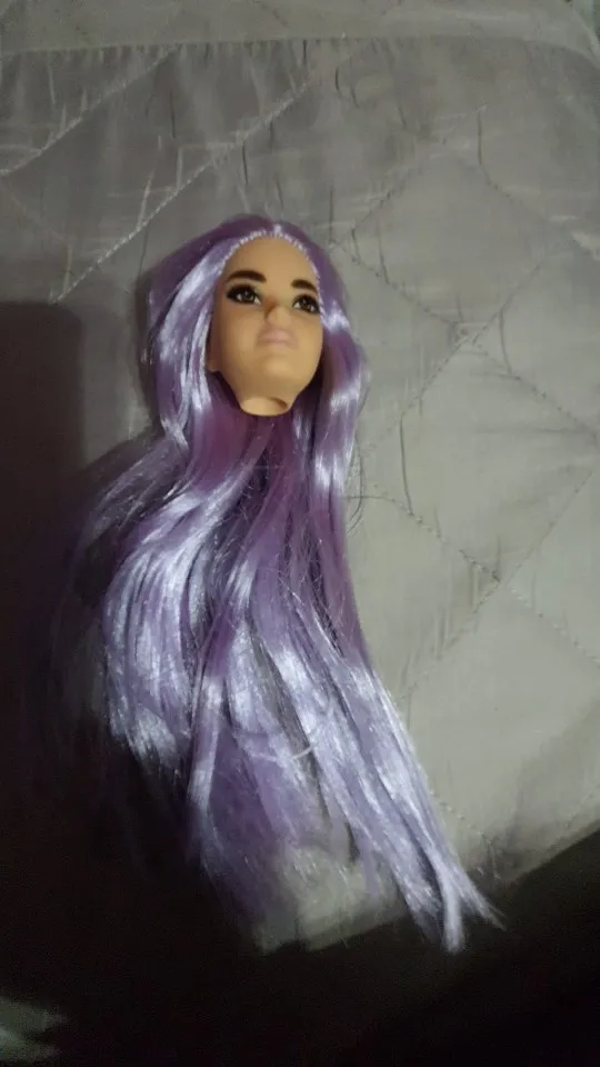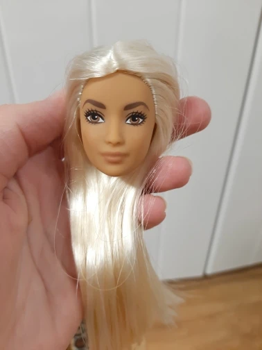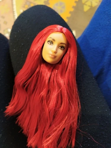Голова хорошая. Проклеила её клеем, чтобы наверняка. Волосы классные, подстригла. Посадила её на тело йоги безграничные движения. Есть еле заметный разнотон. Ещё момент, голова под волосами выкрашена в черный цвет, если кому-то принципиально. Видимо волосы изначально должны были быть темными.