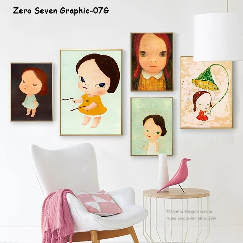 Японские комиксы Yoshitomo Nara, Картина на холсте с изображением девушек из мультфильмов, настенное искусство для детской комнаты, Современное украшение для дома
