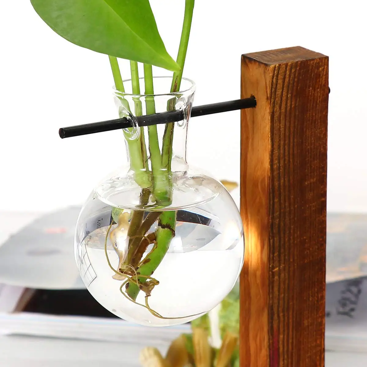 DIY плантатор с ретро дизайном, мини-ваза в форме лампы в деревянной подставке. Гладкая поверхность, хорошая воздухопроницаемость, красивый внешний вид