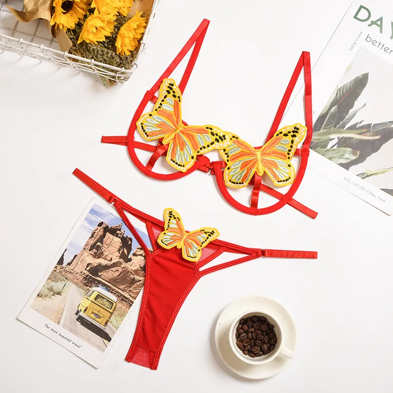 VIKINII сексуальный бельё с бабочками Женский комплект с бюстгальтером Пуш-Ап женское нижнее белье для ночного клуба купальники полые Купальники микро-купальники