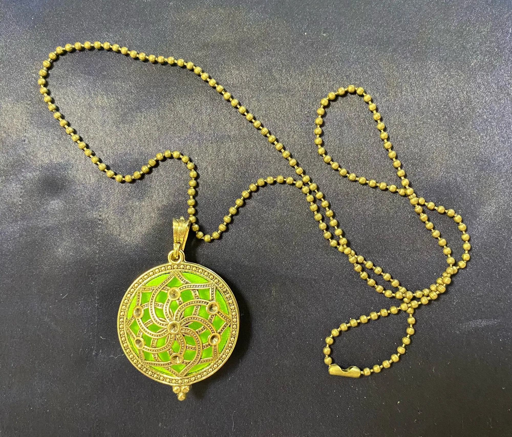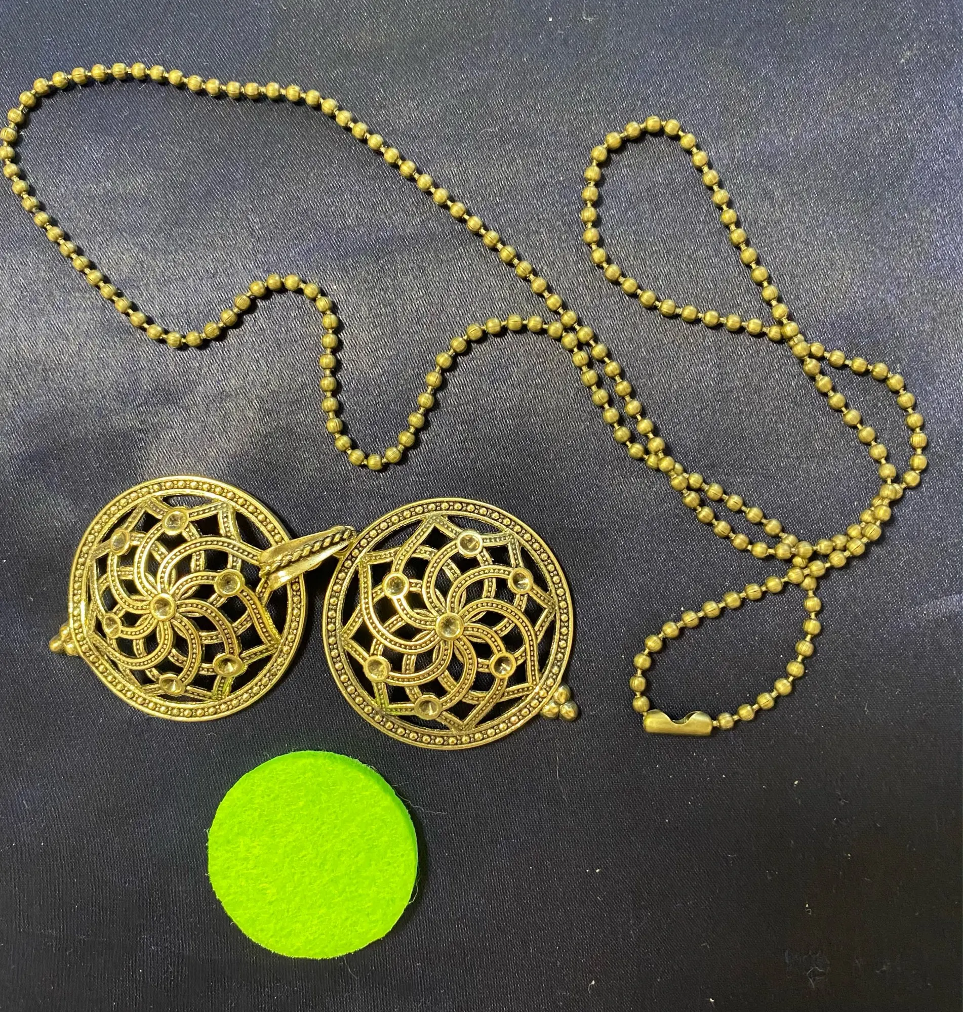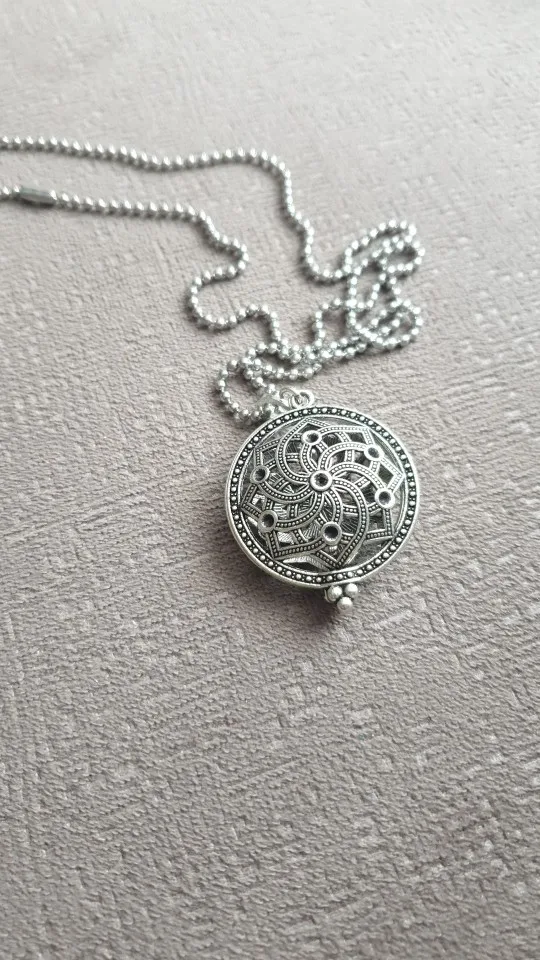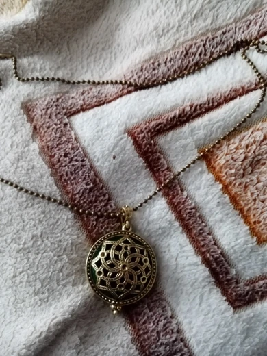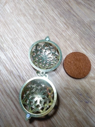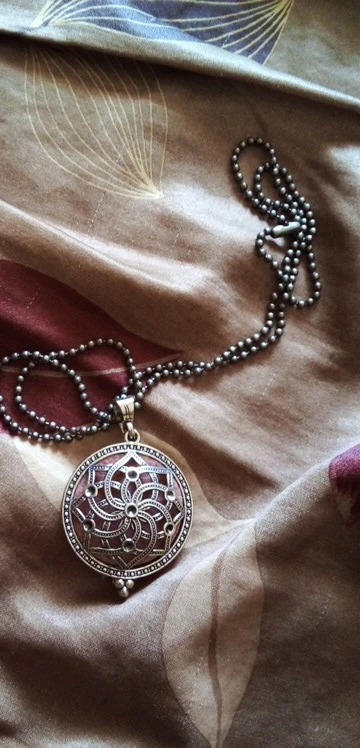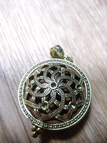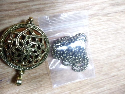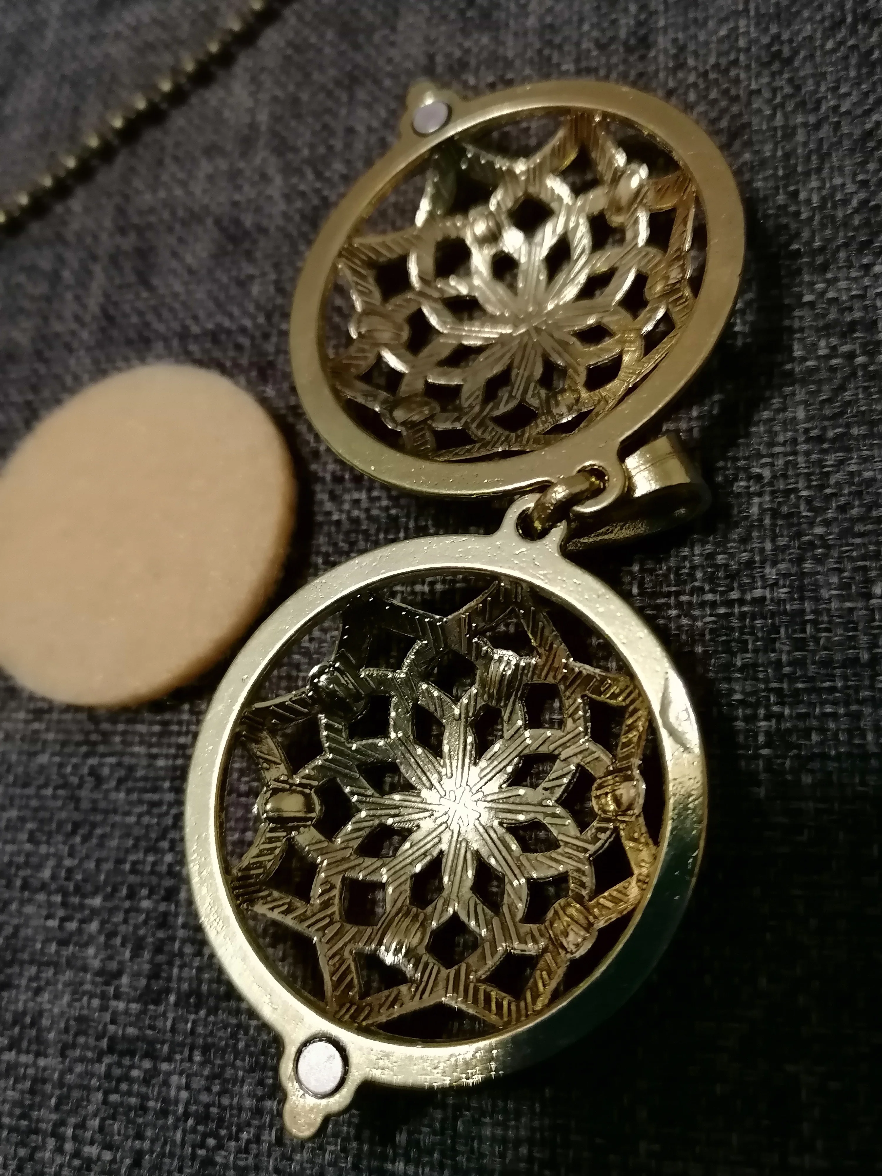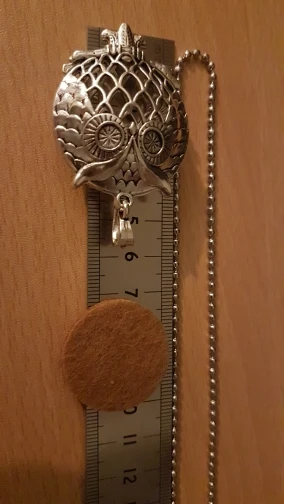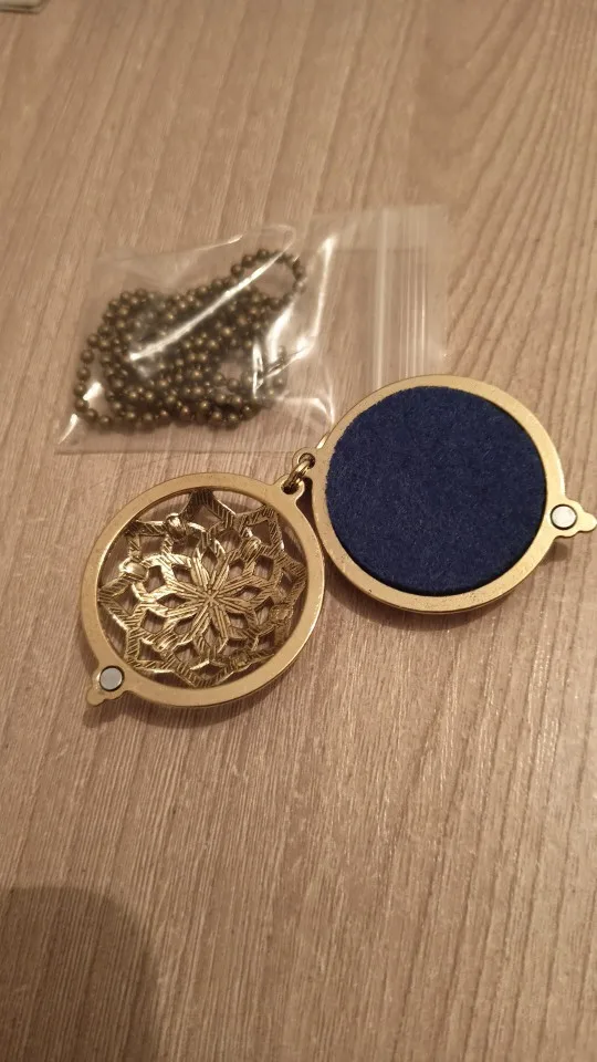 Интересный кулон. Вкладыш для аромата внутри, закрывается на магните. Цепь немного коротковата (для меня), можно заменить. А так, всё очень хорошо за эту цену. Рекомендую, можно брать кому-нибудь в качестве презента. Спасибо!