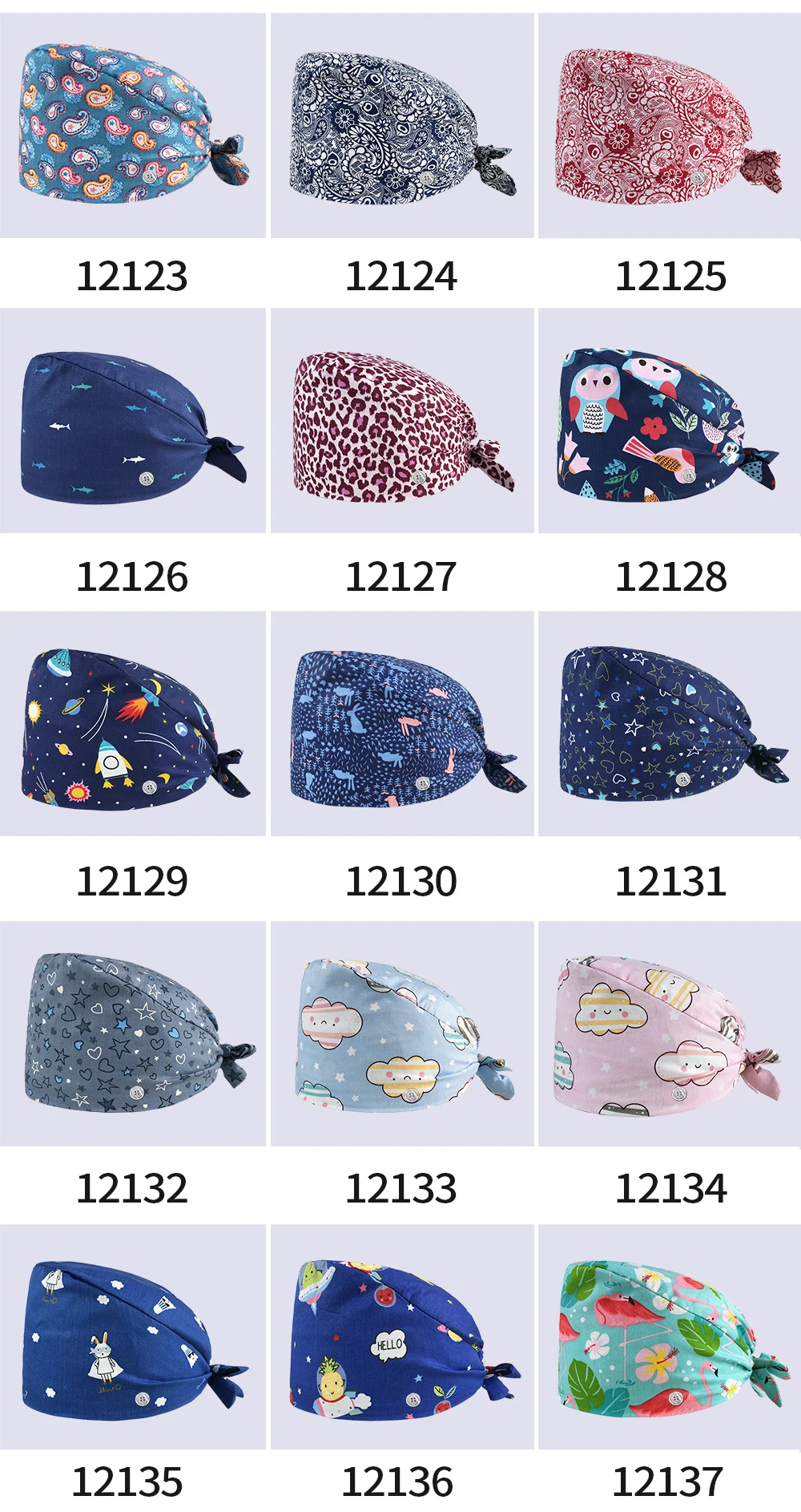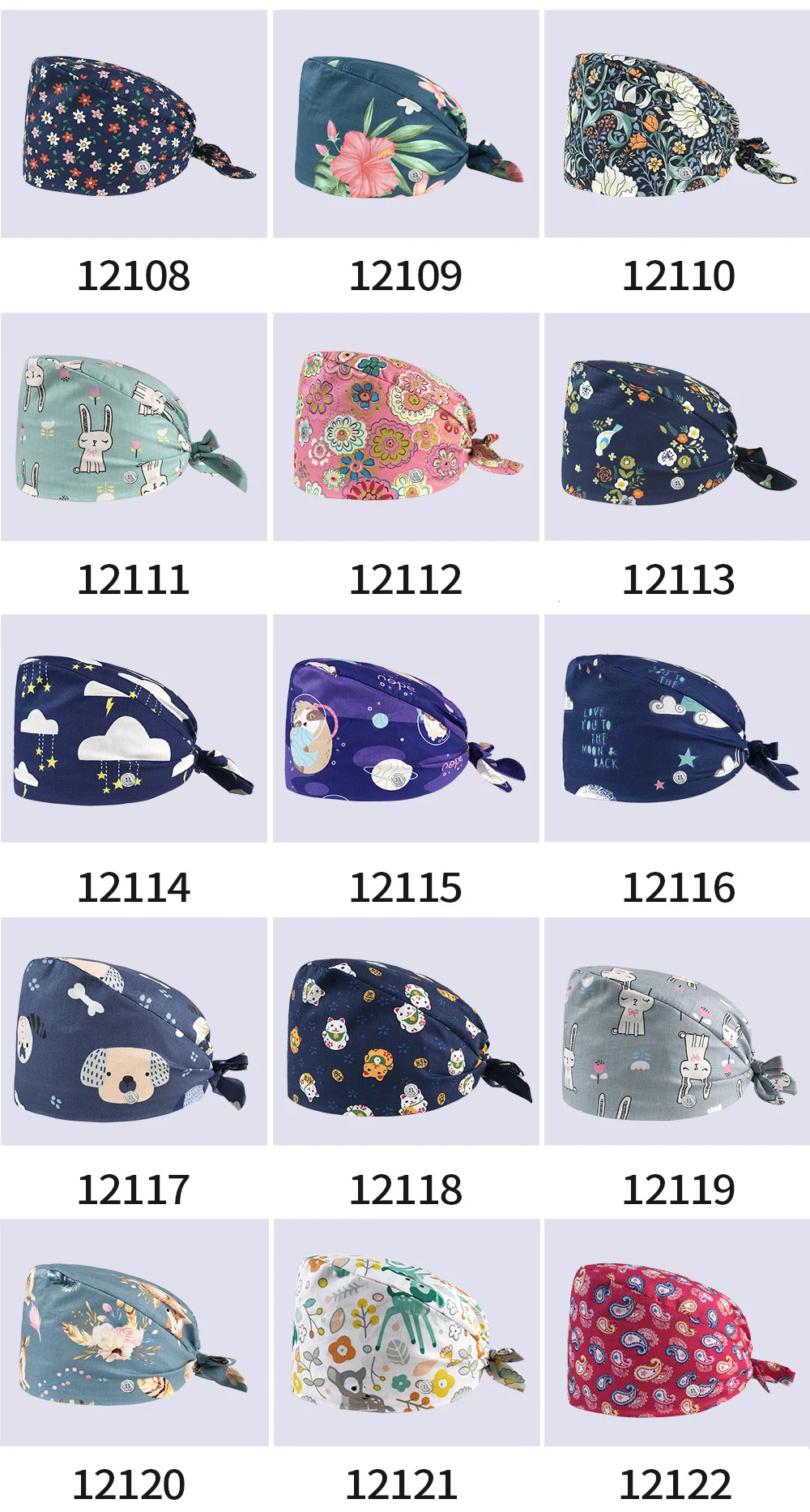 Шапка для медсестры с цветочным узором, регулируемая шапка с разным...