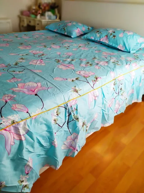 Выглядит как на картинке, но я надеюсь, что юбка с рисунком птицы была отделена от самого постельного белья. Очень легкий, поэтому предположим, что его легко мыть