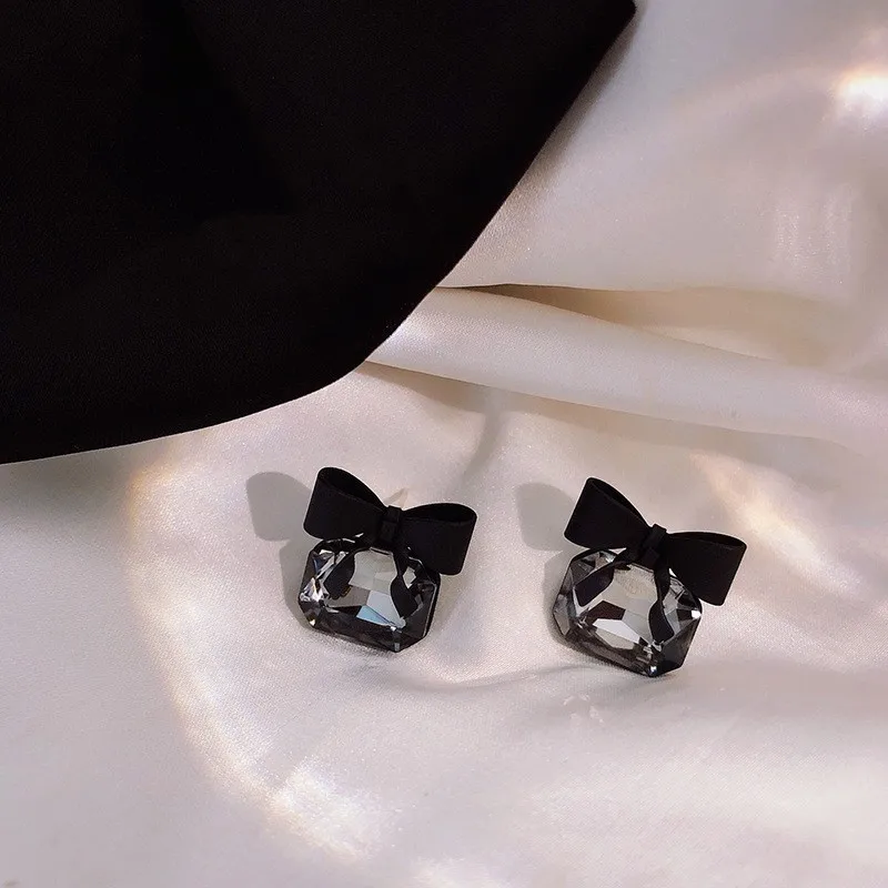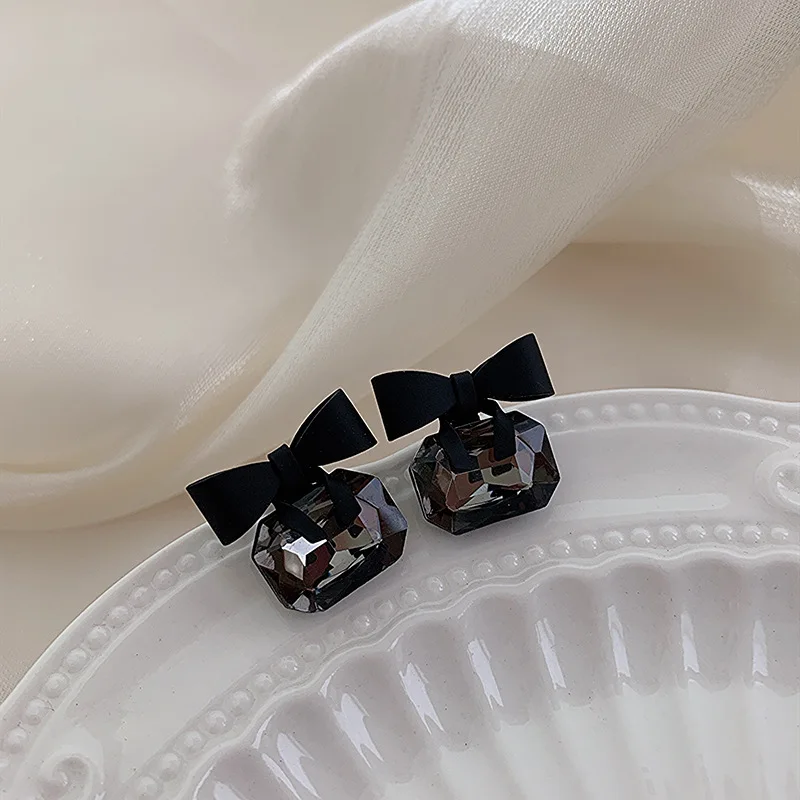 Женские серьги с бантом, черные геометрические серьги-гвоздики с блестящими кристаллами, ювелирные изделия, новинка 2020