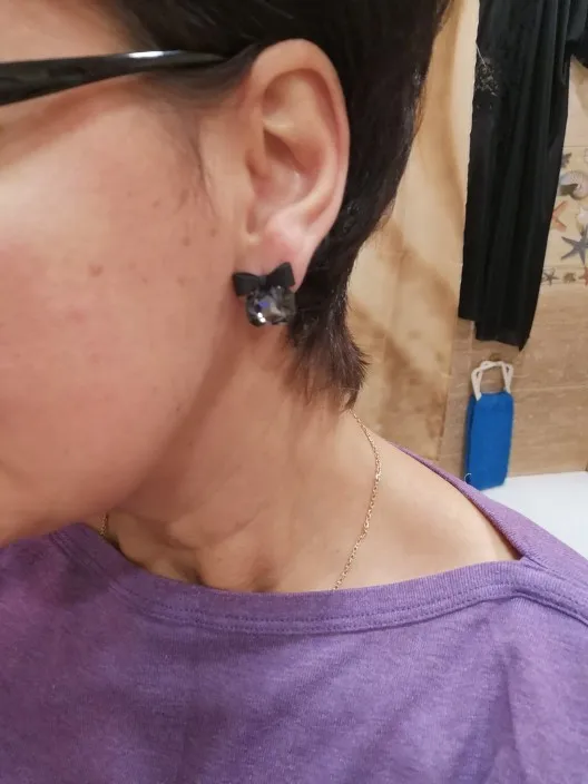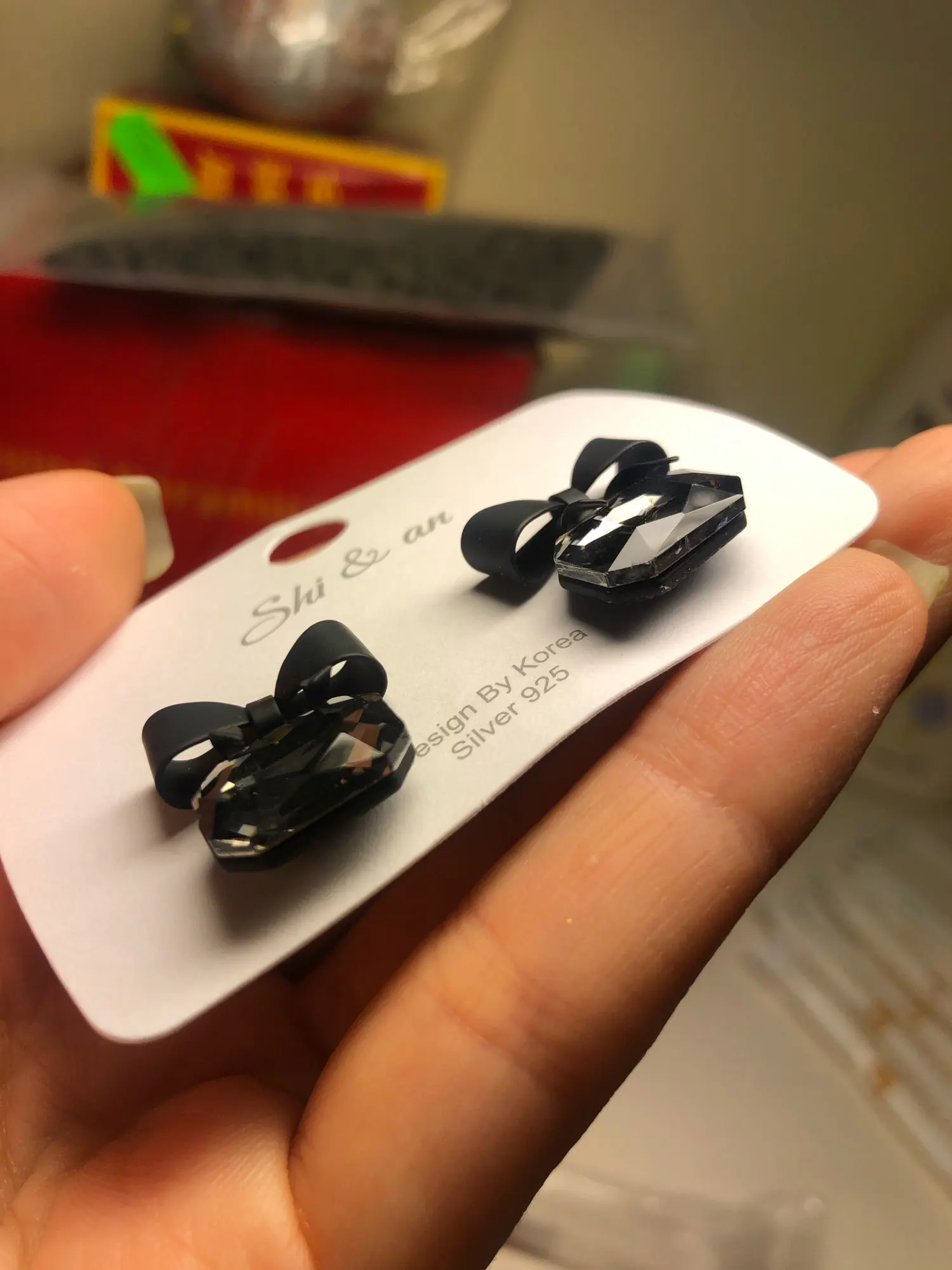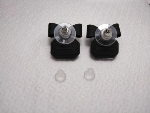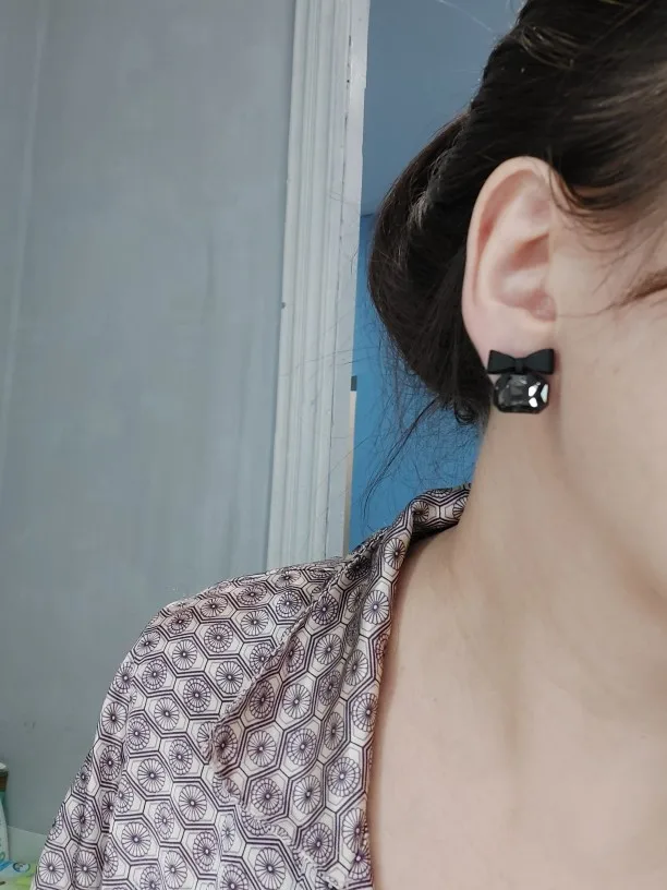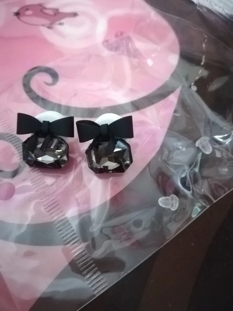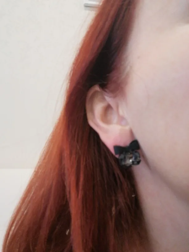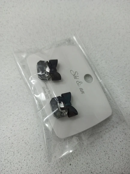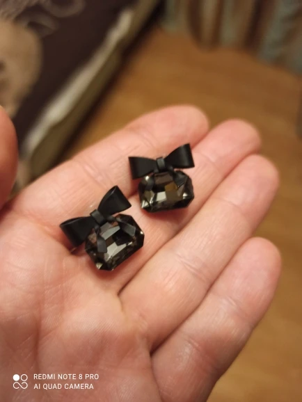 Прекрасные серьги, которые мне понравились более чем... Доставка заняла три недели. Пакет - самый обычный, с пупырками, на самих штырях была поставлена защита в виде кружков из какого-то мягкого материала типа фома, но и это не очень-то спасло от искривлений. Обычное дело. Пришлось выпрямлять, всё получилось. Вместе с заглушками, которые на фото, шли маленькие силиконовые заглушки, но в них нет необходимости, первые - фиксируют прекрасно. "Камушек" - это стекло в красивой огранке, сверкает - невозможно, бантики - это материал типа пластика. За счёт стекла серьги достаточно увесистые, но в нОске комфортные, за 12 часов ничего не отвалилось (я про уши). Вообще, сделаны добротно, ну, не придраться, чесслово!