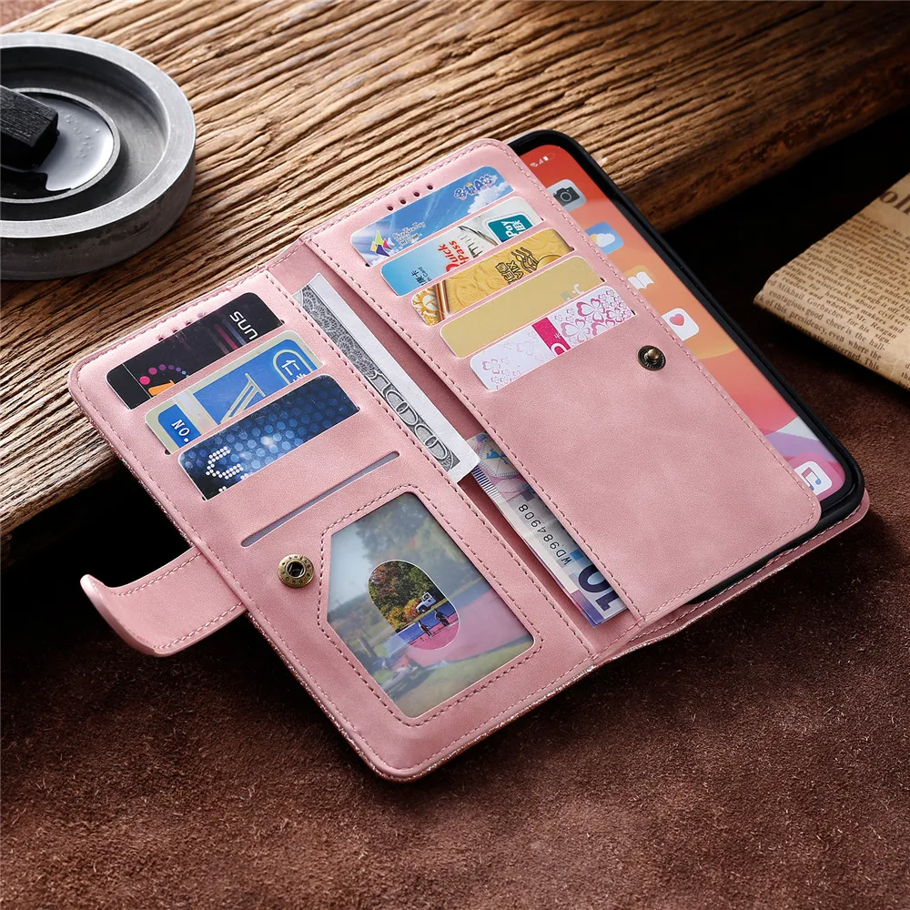 Чехол с 9 отделениями для карт для iPhone 13 Pro Max, роскошный бле...